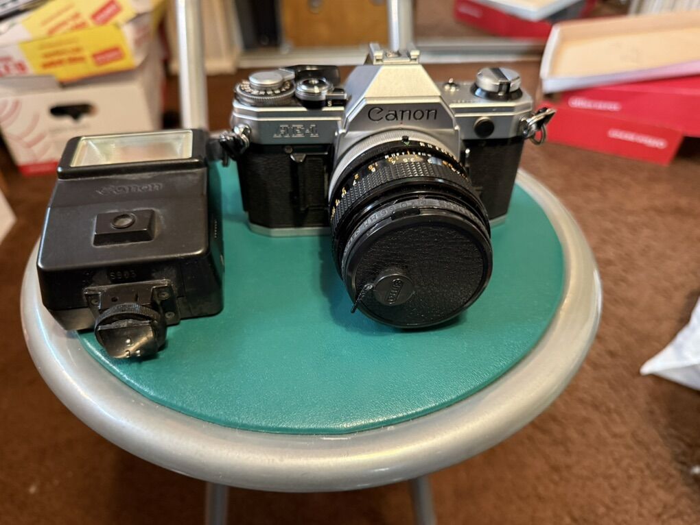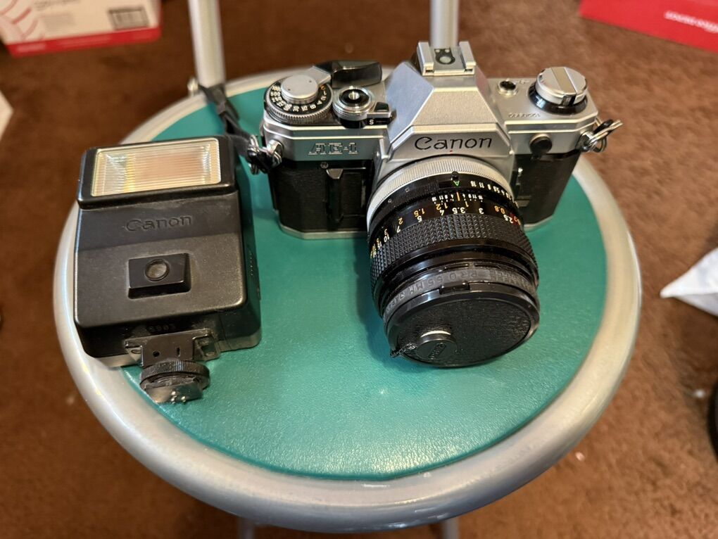 VenmoVintage Canon AE-1 35mm Camera with Cannon FD Lens 1:1.4 SSC with Canon Speedlite 155A Flash BEEN A GREAT CAMERA!!!