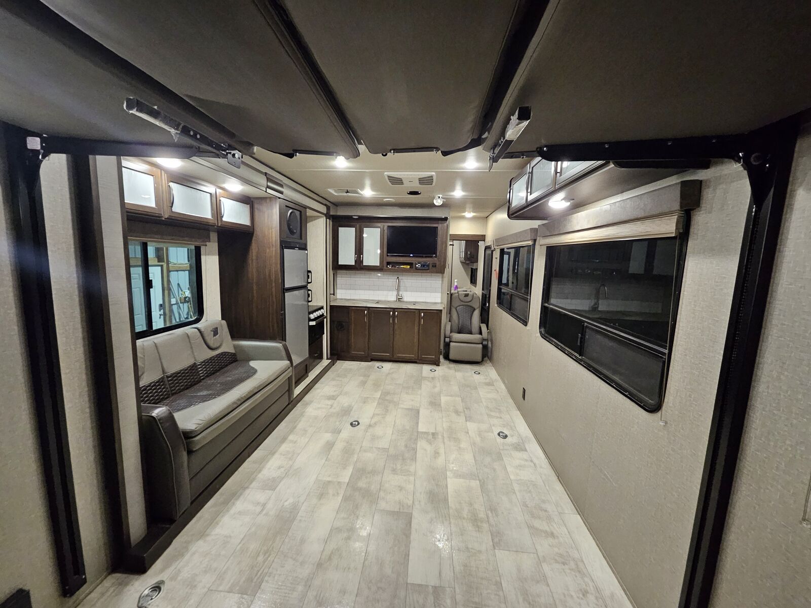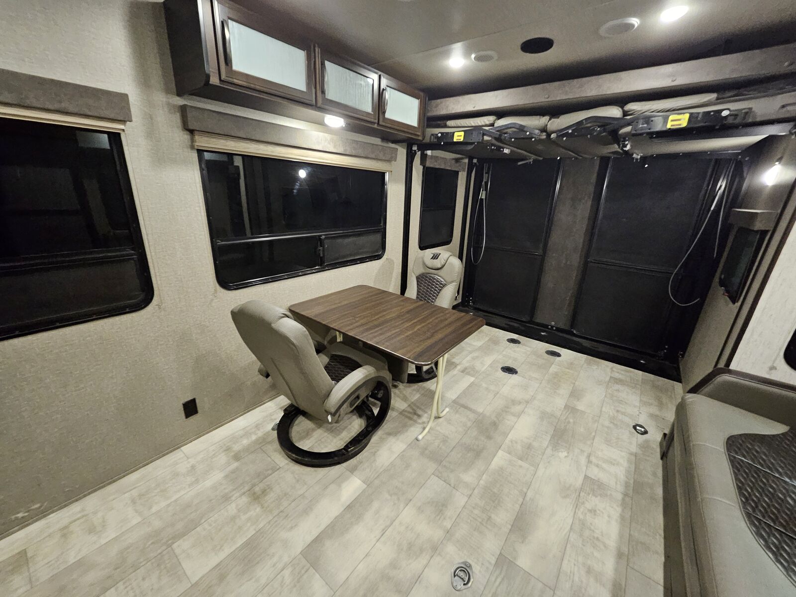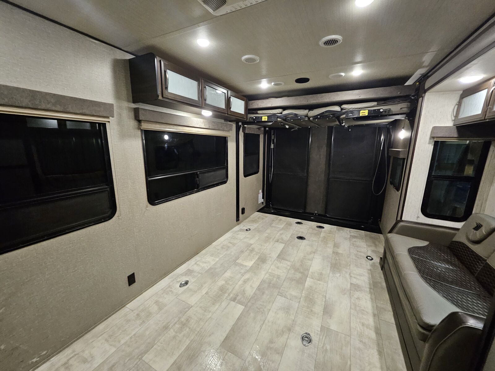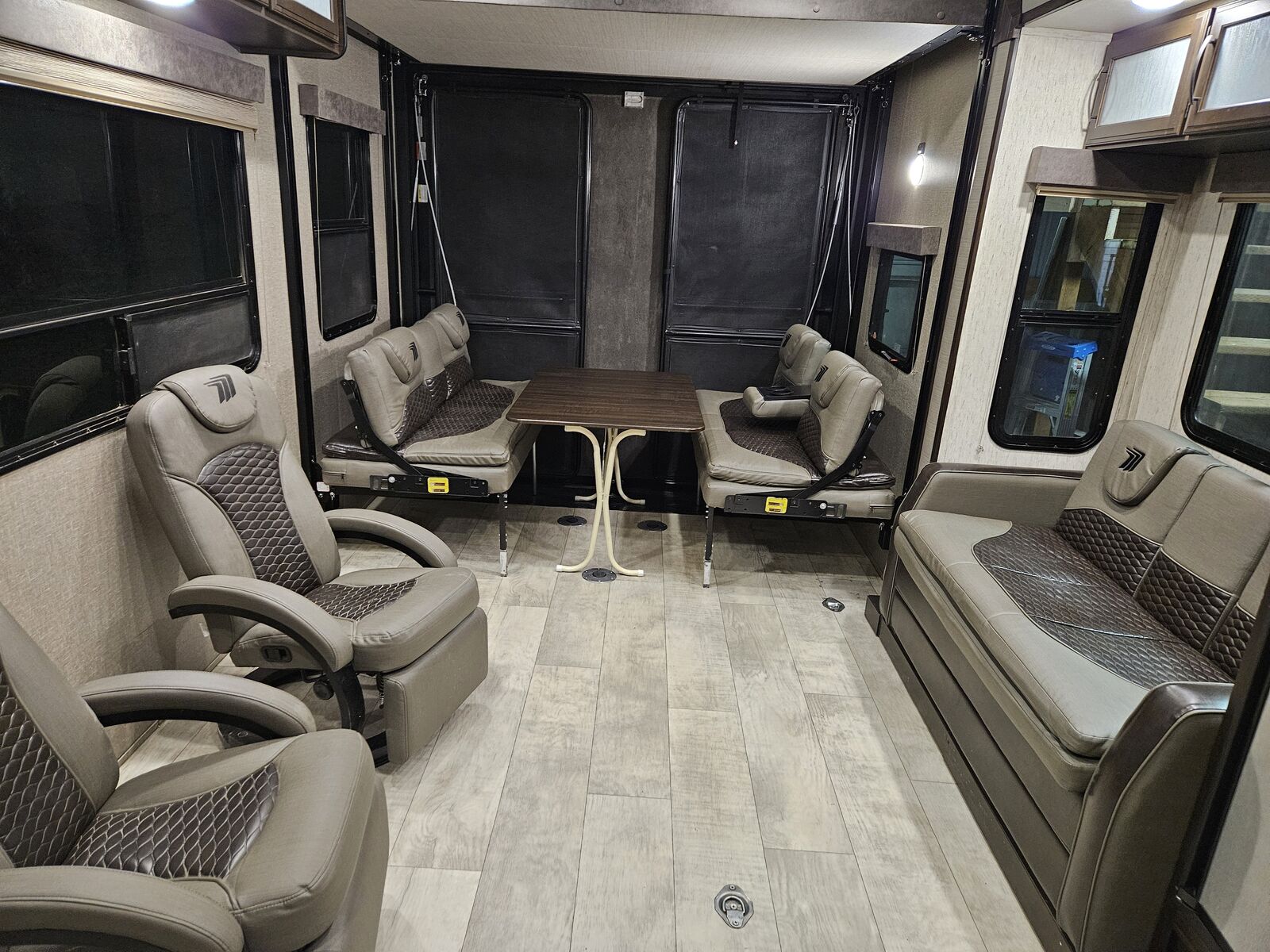 Tired of small campers? This 2019 Momentum 28G features a massive 16ft garage for your toys and a rear "party deck" with a screen for bug-free evenings. We’ve upgraded it with a 2000W power inverter for off-grid camping and swapped the standard seats for comfortable Euro Chairs. Sleeps 6 comfortably with the power-bunk system. Great condition, everything works, and it’s ready for the road today. See photos for how the interior transforms from a garage to a living room! ProPride hitch included (3k new).