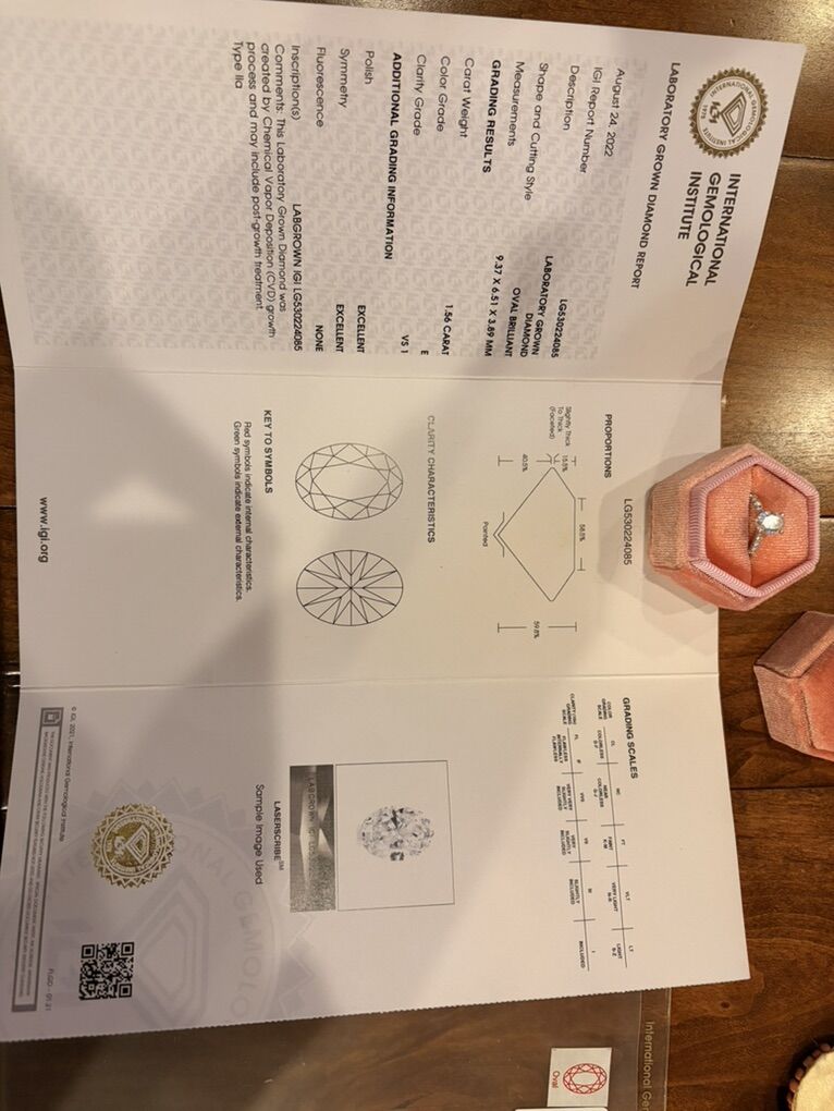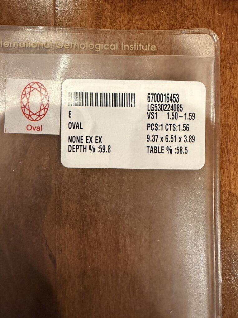 1.56 Carat Oval Brilliant Measurements- 9.37X6.51X3.89 MM Color Grade- E Clarity Grade- VS 1 Polish- Excellent Symmetry- Excellent Fluorescence- None