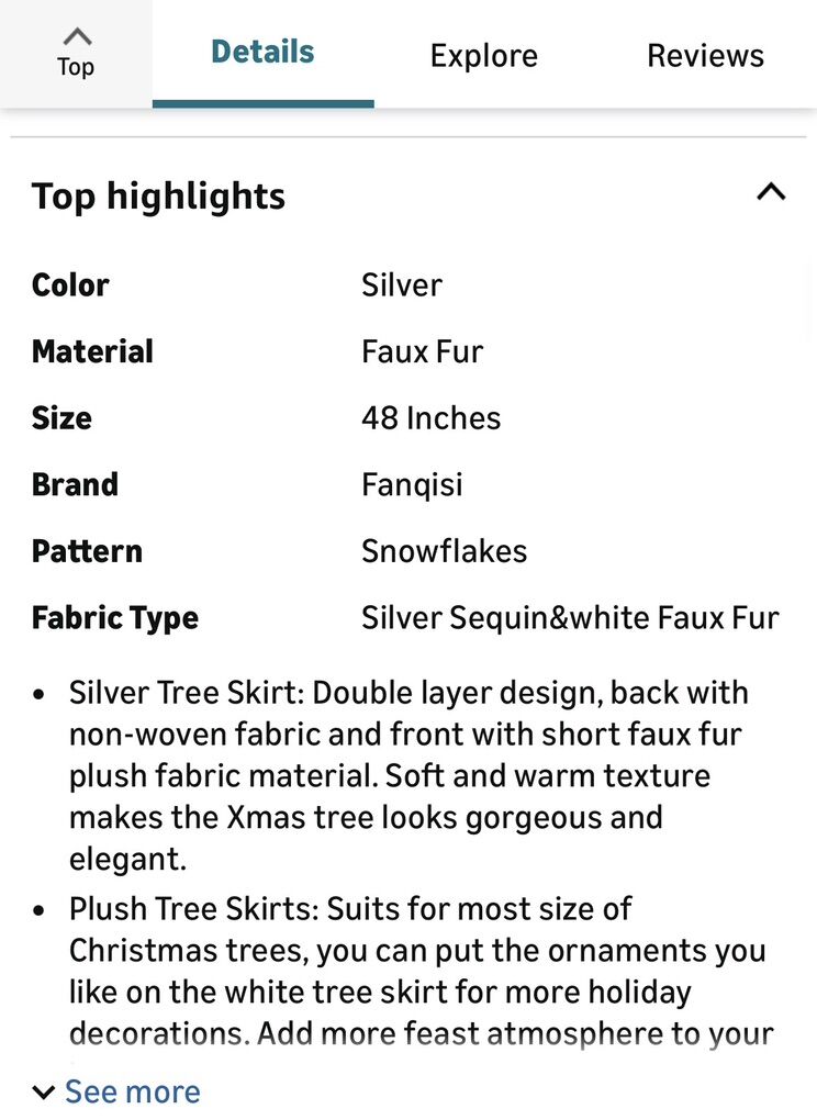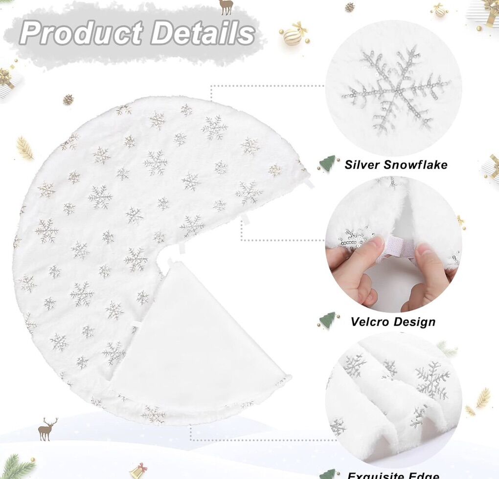 Christmas Tree Skirt 48 Inch White Faux Fur Tree Skirts with Silver Snowflakes Winter Large Plush Xmas Tree Mat Christmas Tree Decorations