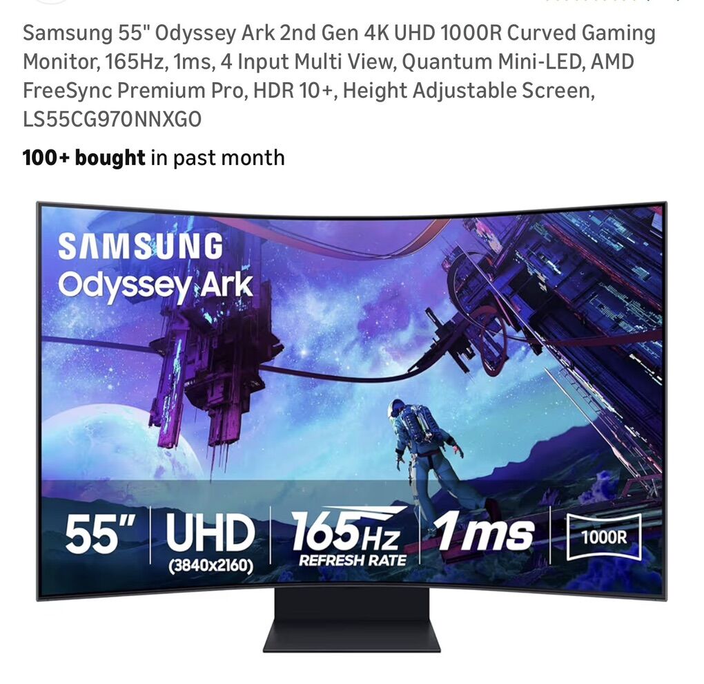 Samsung 55 Odyssey Ark 2nd Gen 4K UHD 1000R Curved Gaming Monitor, 165Hz, 1ms, 4 Input Multi View, Quantum Mini-LED, AMD FreeSync Premium Pro, HDR 10+, Height Adjustable Screen, LS55CG970NNXGO