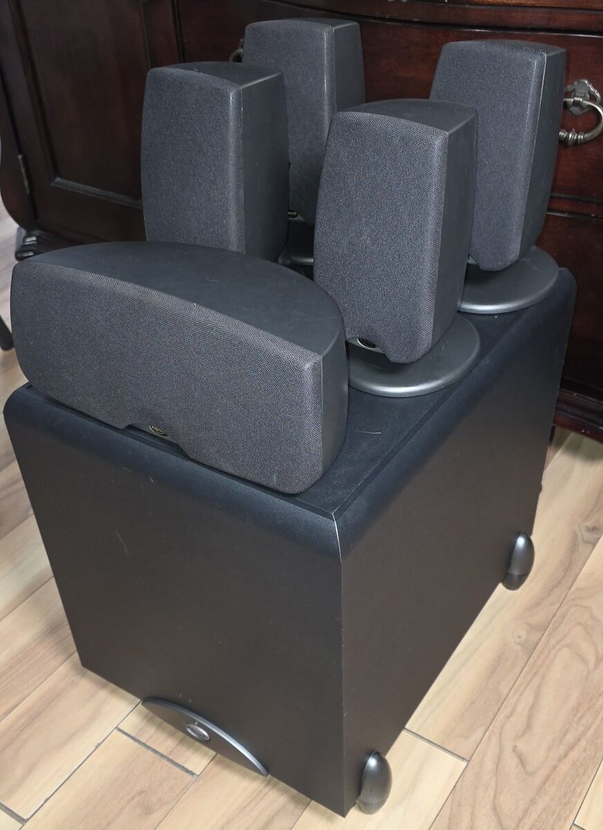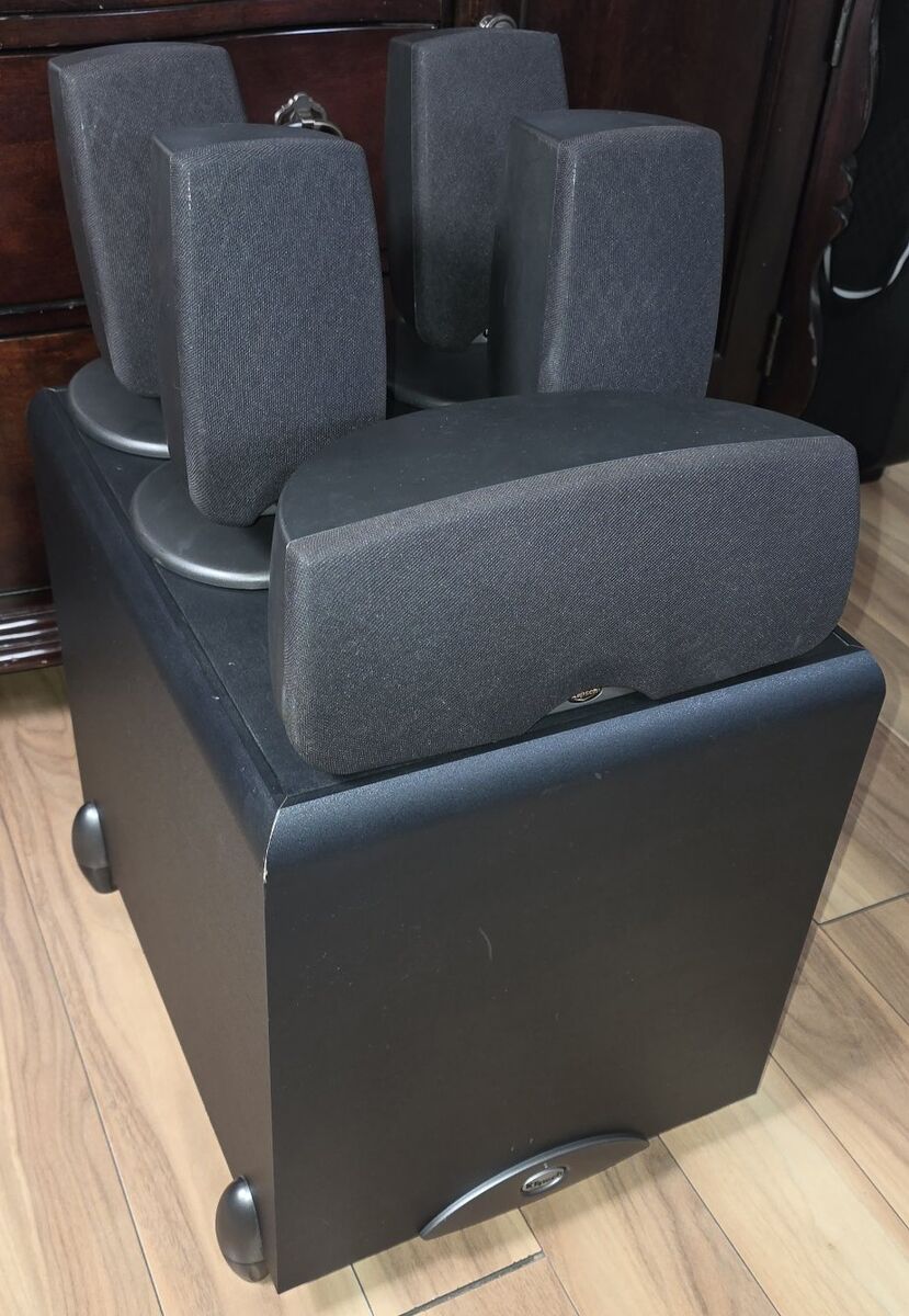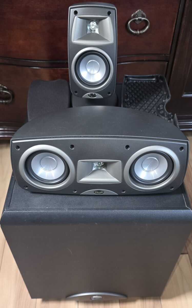 Pre-Owned Klipsch Synergy Sub 10 Powered Subwoofer and 5 Klipsch Quin3bk Speakers. Doesn't include cables. See the video, Photos. text message is better, see my other adds, thank you.