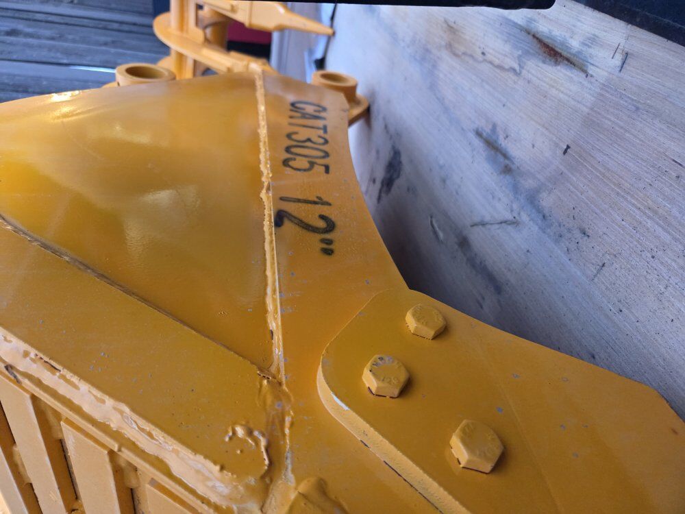 ZelleTwelve inch excavator bucket made to fit a five ton caterpillar 305 / Cat305. also have a thirty two inch excavator rake available.