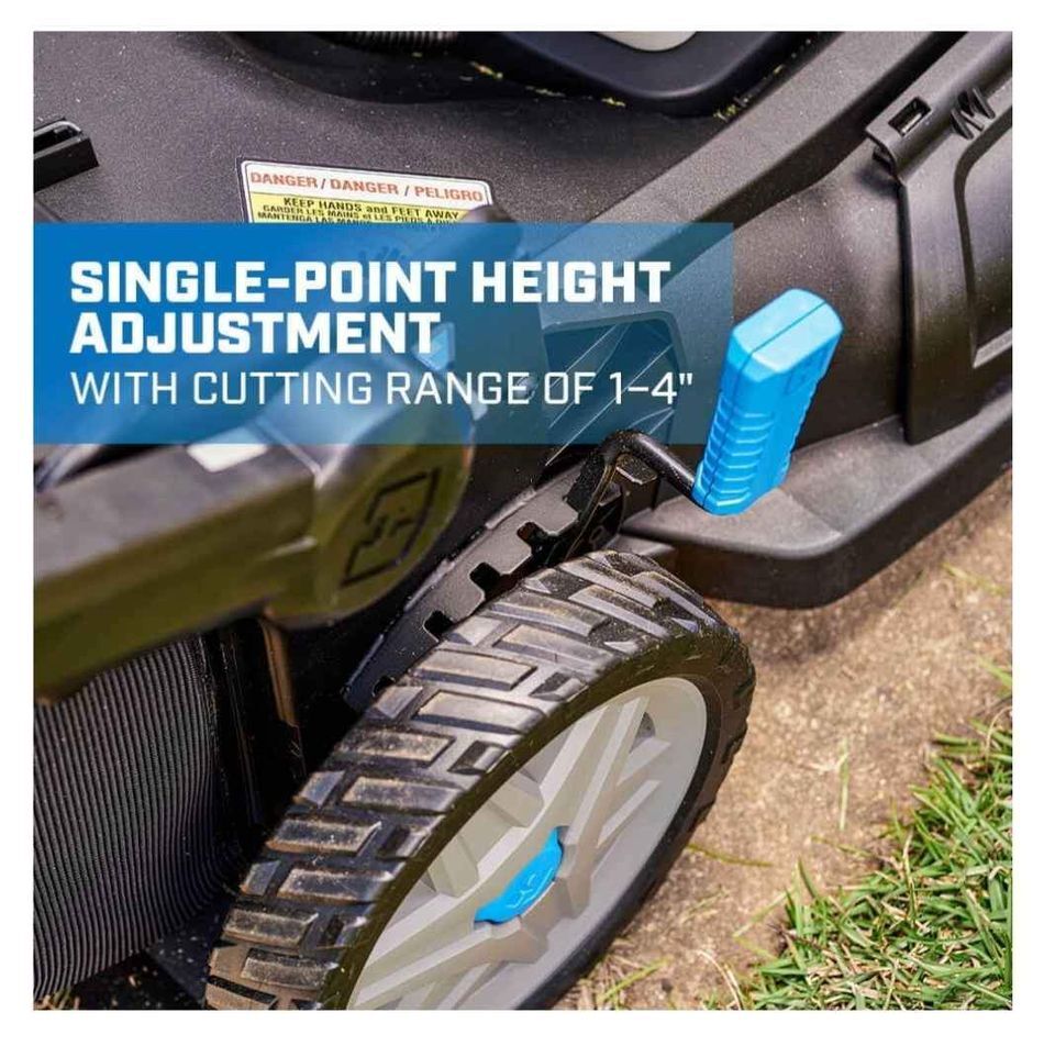 This battery-powered mower has the muscle to cut up to 3/4 acre on one charge. With the included (2) 6.0Ah batteries and dual active battery ports, our cordless 40V 21" Composite Deck Self-Propelled Mower has the added benefit of increased runtime for trekking through a jungle of overgrowth. Choose how you want to mow with 3-in-1 bagging, mulching & side discharge capabilities. It also features pass-through bagging for an easier bag grab. When you’re done, the FAST FOLD handles make for easy upright storage in your garage. The composite deck is strong yet lightweight as well as corrosion resistant. Oh, and that annoying pull cord? It’s gone. This cordless mower starts with just the push of a button. Height modifications are also easily made with a single-point height adjustment knob for a 1"-4" cutting range. Another time-saver, the Fast Charger, only takes one hour per battery to charge. It also has integrated LED headlights to work even in dim conditions. Works with All HART 40V Batteries. With powerful brushless motors, premium features, and fast charging, HART 40V Supercharge is the perfect choice for yards without compromise.
