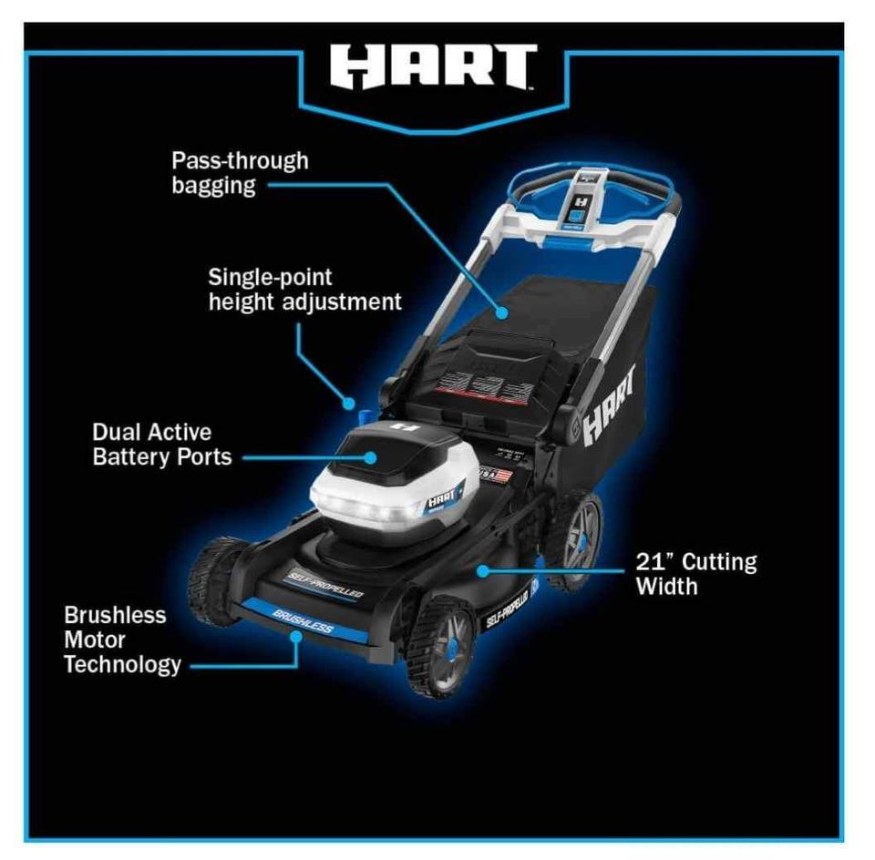 HART 40-Volt SUPERCHARGE Brushless 21-inch 3-in-1 Self-Propelled Mower (2) 6.0 Ah Lithium-Ion Batteries
