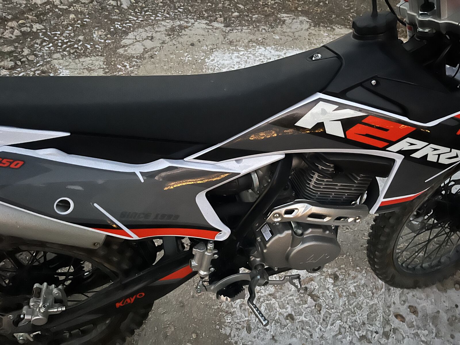 kayo k2 pro, I have only road it about 4 times. It has about 2/3 miles on it.