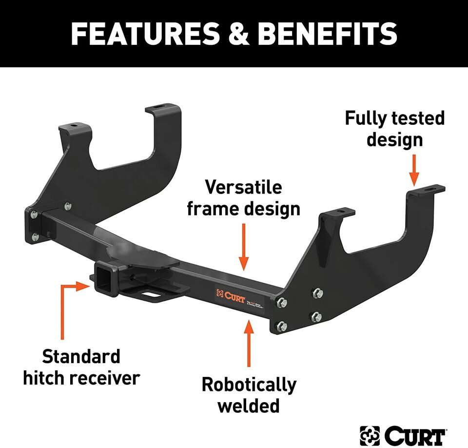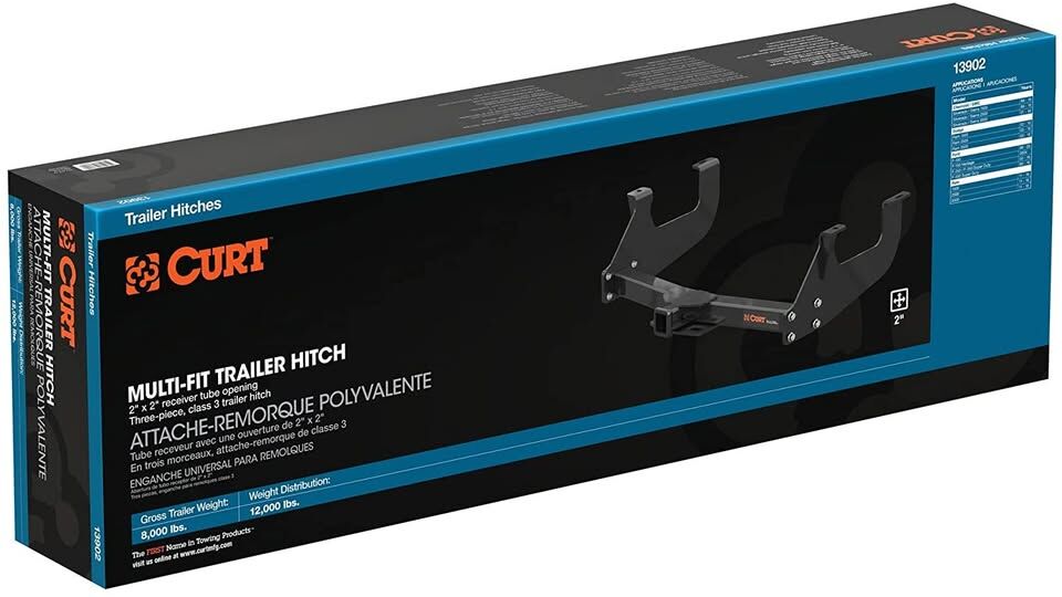 CURT universal trailer hitches fit several different vehicle manufacturers. This class 3 multi-fit trailer hitch is compatible with most full-size pickup trucks from Chevy, Dodge, Ford, GMC and Ram, including the latest models. It features a gross trailer weight capacity of 8,000 lbs., a tongue weight capacity of 800 lbs. and a 2" x 2" receiver tube opening, making it an excellent choice for towing everything from utility trailers to large campers (NOTE: Never exceed the lowest weight capacity of any towing component, including the hitch, ball mount, vehicle, etc.). For extra towing power and stability, this multi-fit hitch can also be used in combination with a weight distribution hitch, bringing its gross trailer weight capacity up to 12,000 lbs. and its tongue weight capacity up to 1,200 lbs. It comes with mounting hardware and instructions, and typically requires little or no drilling during the installation. To protect it from the wear and tear of the road ahead, this CURT multi-fit hitch comes with a durable black powder coat finish and a limited lifetime warranty.