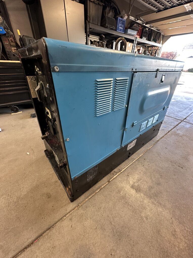 Miller big blue 500D welder. 7461 hours. Fixed idle model. Runs strong zero blow by. Great field welder. Not the prettiest but fires right up, 120v outlets need to be replaced.