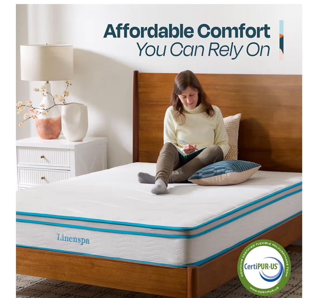 Linenspa 8 Inch Memory Foam and Spring Hybrid Mattress - Medium Firm Feel - Bed in a Box - Quality Comfort and Adaptive Support - Breathable - Cooling - Guest and Kids Bedroom - Full Size