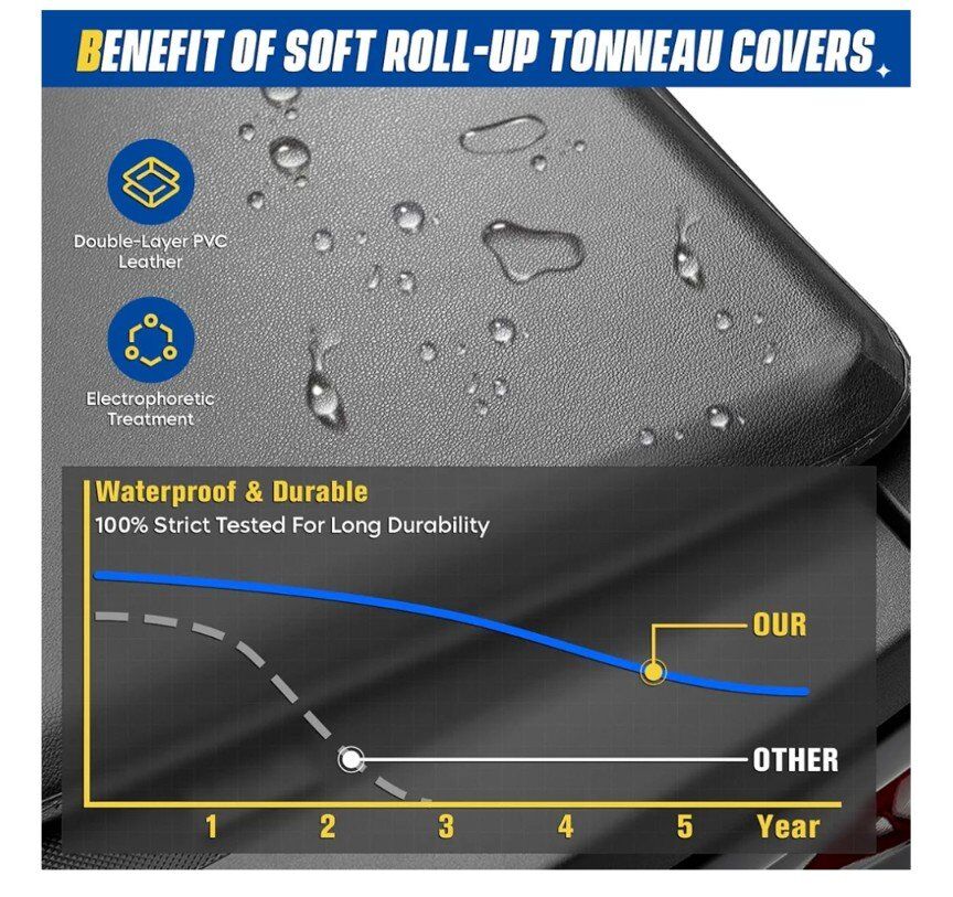 Roll-Up Design: The roll-up design allows for easy access and convenience and to fully cover your truck, allowing quick access to the truck bed when needed.