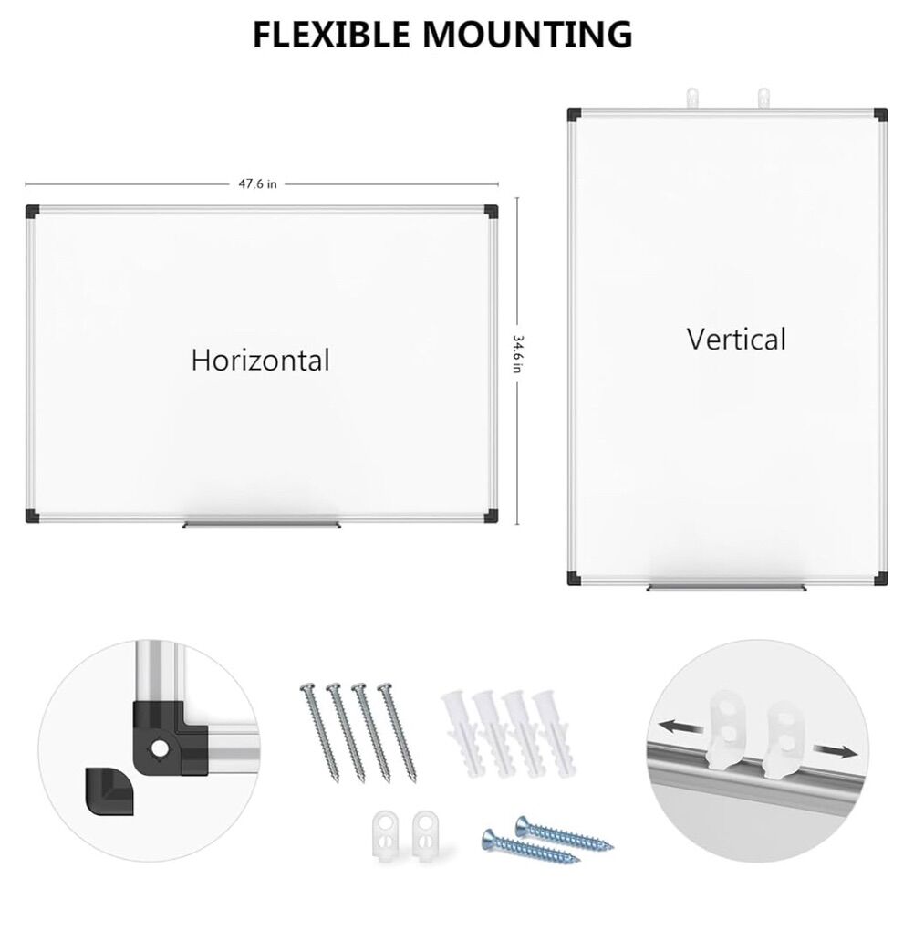 XBoard Whiteboard 48 x 36 Inch, Magnetic Dry Erase Board with Aluminium Frame & Marker Tray 4' x 3'