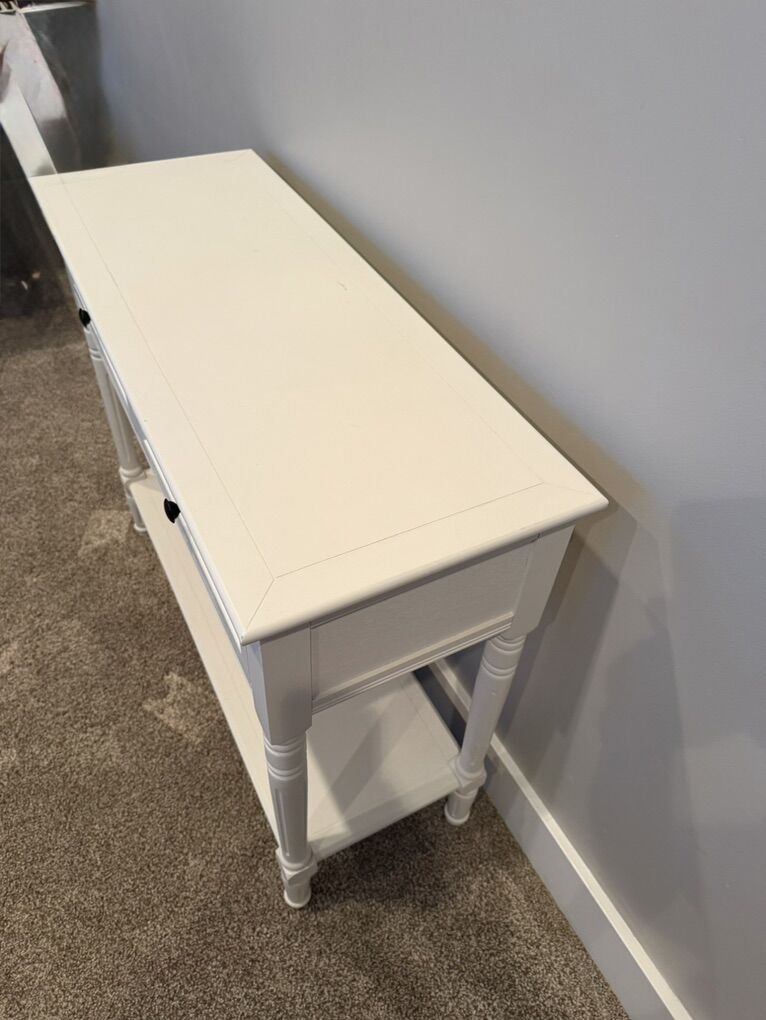 VenmoSide table, entry table, hall way table. In excellent condition. Like new. No dents or scratches. Smoke free/pet free home. Height 29.5 inches Length 35.5 inches Depth 14 inches See Less