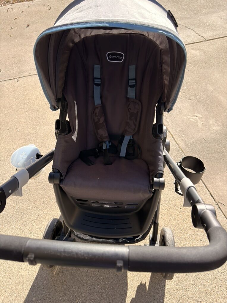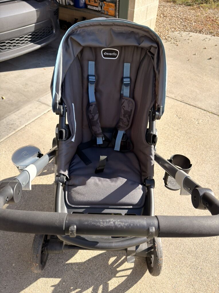 The seat can face forward or back, reclines in 3 positions, and the footrest adjusts too. The sun canopy is a bit longer than most, which is great for shade. Also, I love how high the seat sits—no sore back when loading baby.