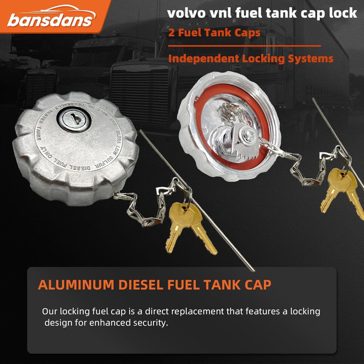 ApplePay2Pcs 20770691 3" Truck Fuel Tank Cap, Locking Diesel Fuel Cap Fit for Volvo VN & VNL Heavy Truck Models, Replaces OEM S-23949, 20511590, Vol 20770691, Aluminum Diesel Fuel Tank Cap
