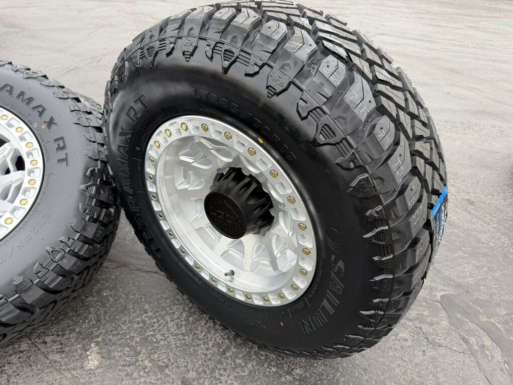 Brand new wheels and tires. Stickers still on everything, never mounted to a truck.