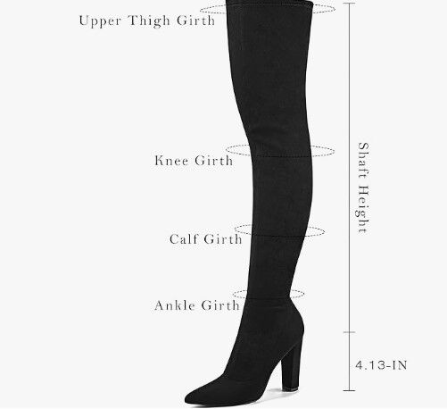 About this item - TRENDY THIGH HIGH BOOTS: Heel measures 4.13 inches(approx). The classic chunky heels and pointed toe design effortlessly combine fashion and comfort, ensuring you stay at ease wherever you go.