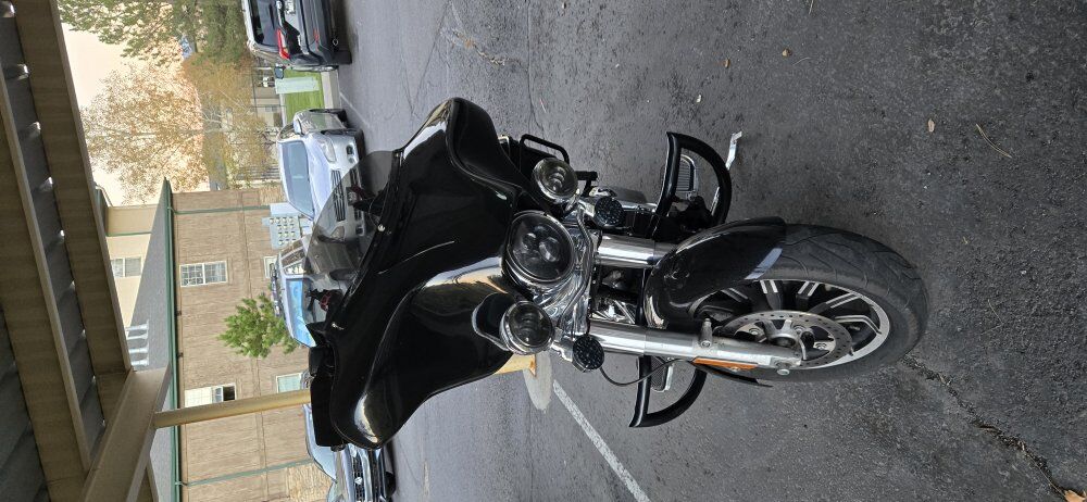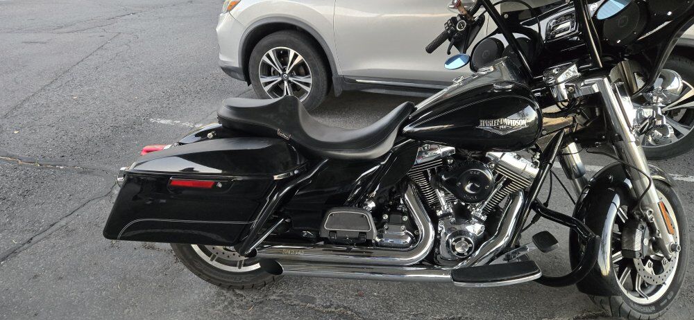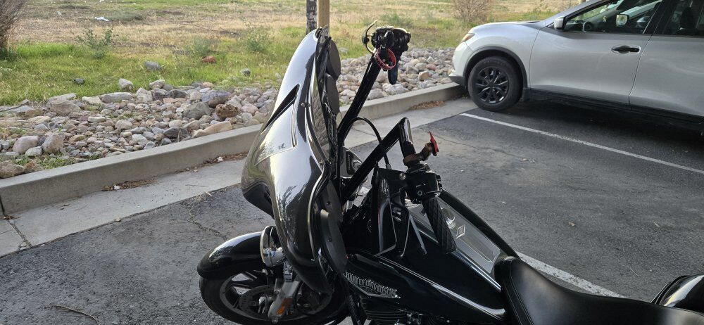 Upgrades include: All LED Lights and Daymaker Headlamp, passenger floorboards, engine gaurd, meathook bars, handgaurds, illuminated controls, Stage I Fuelmoto Tuner, S&S Teardrop intake, Sampson exhaust, Quick Detach Reckless Industries Batwing Fairing with Rockford Fosgate Speakers & Bluetooth connectibility. I just had the service done at South Valley Harley-Davidson, to include all fluids changed, new tires and brake rotors and wheel bearings.