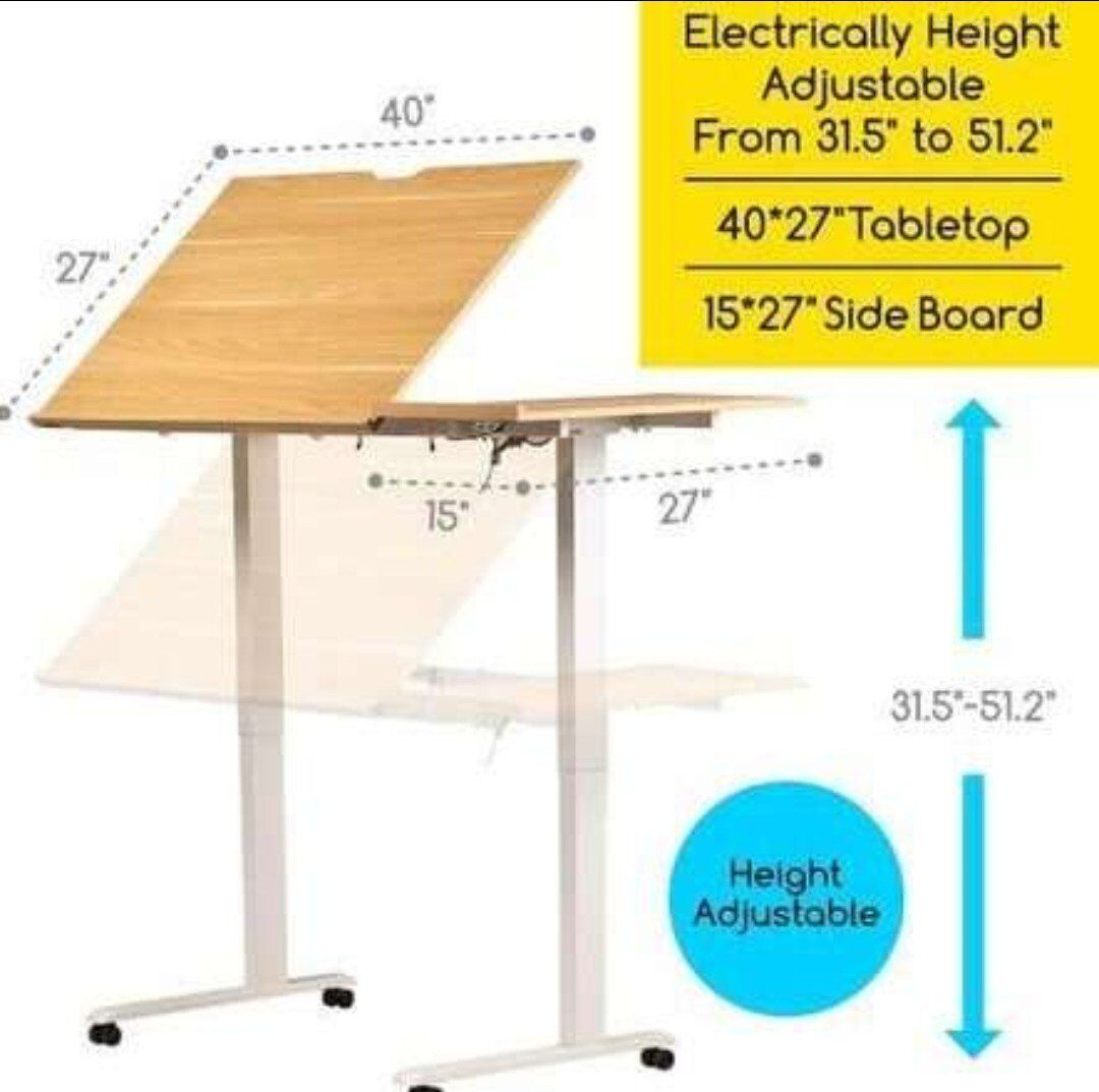 MEEDEN Height Adjustable Drafting Table - 31" to 52" Electric Drawing Desk with Large Side Board - 40 * 27" Tiltable Tabletop - Rolling Wheels -... See More