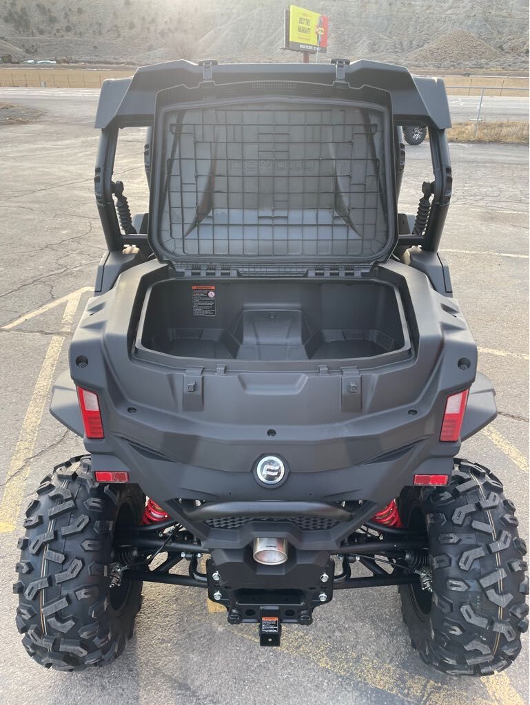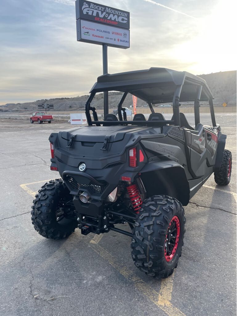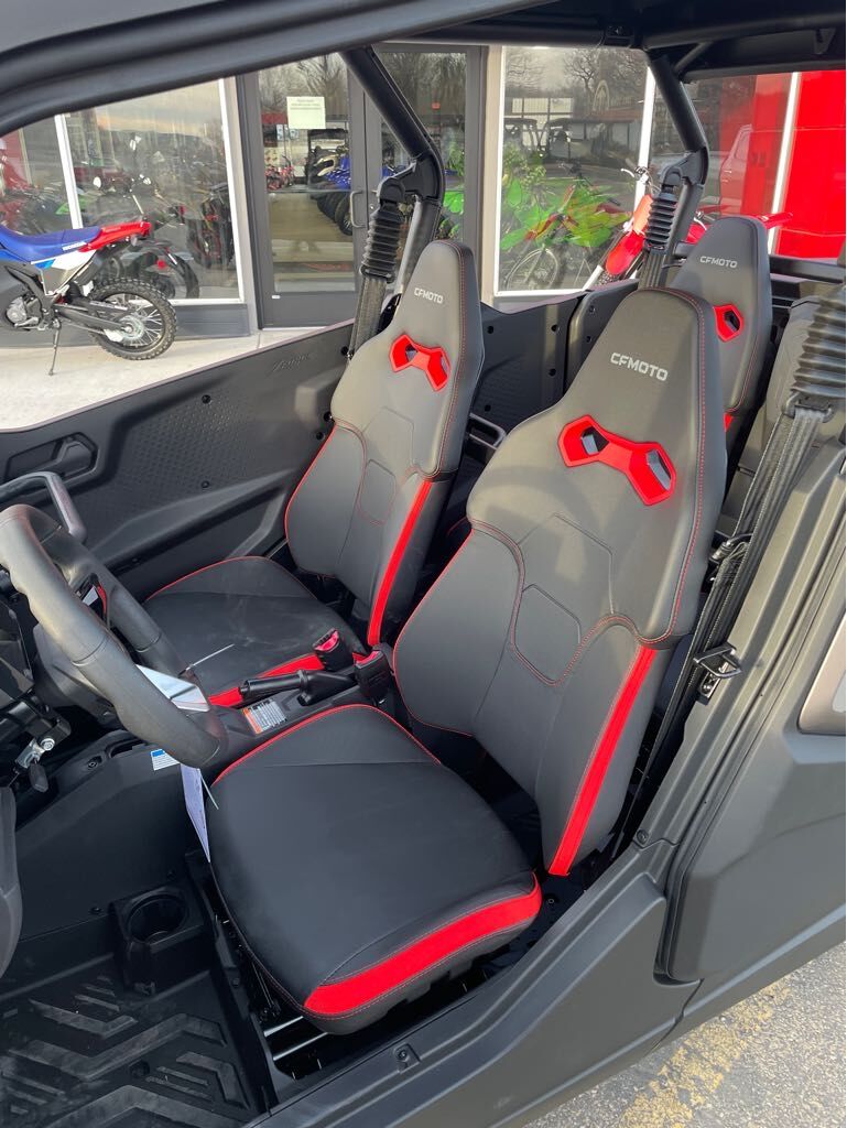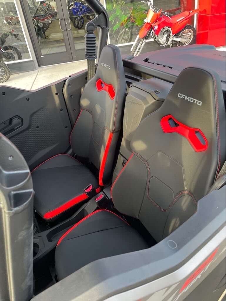 The ZFORCE 950 Sport-4 takes the same aggressive DNA as the 950 Sport and stretches the wheelbase to fit four full-sized bolstered seats—so everyone can chase the adrenaline together. The 963cc V-Twin engine delivers 83 horsepower with SPORT and NORMAL ride modes to match terrain or mood. Dual-mode power steering and long-travel suspension keep the ride sharp, while 27” CST tires provide grip that bites when the trail gets loose. Add in premium cabin touches, 12 inches of ground clearance, and cargo space to match Engine Type: V Twin Displacement: 58.7 cu. in. (963 cc) Cooling: Liquid Fuel System: Gas Front Suspension: Independent Double A-Arm Front Brakes: Hydraulic Disc Front Tire: CST Stag 27 x 9 - 14 Rear Suspension: Independent Double A-Arm Rear Brakes: Hydraulic Disc Rear Tire: CST Stag 27 x 11 - 14 Dry Weight: 1700 lb. (771.1 kg.) Wheelbase: 120 in. (3048 mm) Front Travel: 12.1 in. (307.3 mm) Rear Travel: 13.1 in. (332.7 mm) Ground Clearance: 12 in. (304.8 mm) Fuel Capacity: 9.8 gal. (37.1 L) Towing Capacity: 1500 lb. (680.4 kg.) Drive System: Continuously Variable (CVT) Speedometer: Standard Odometer: Standard