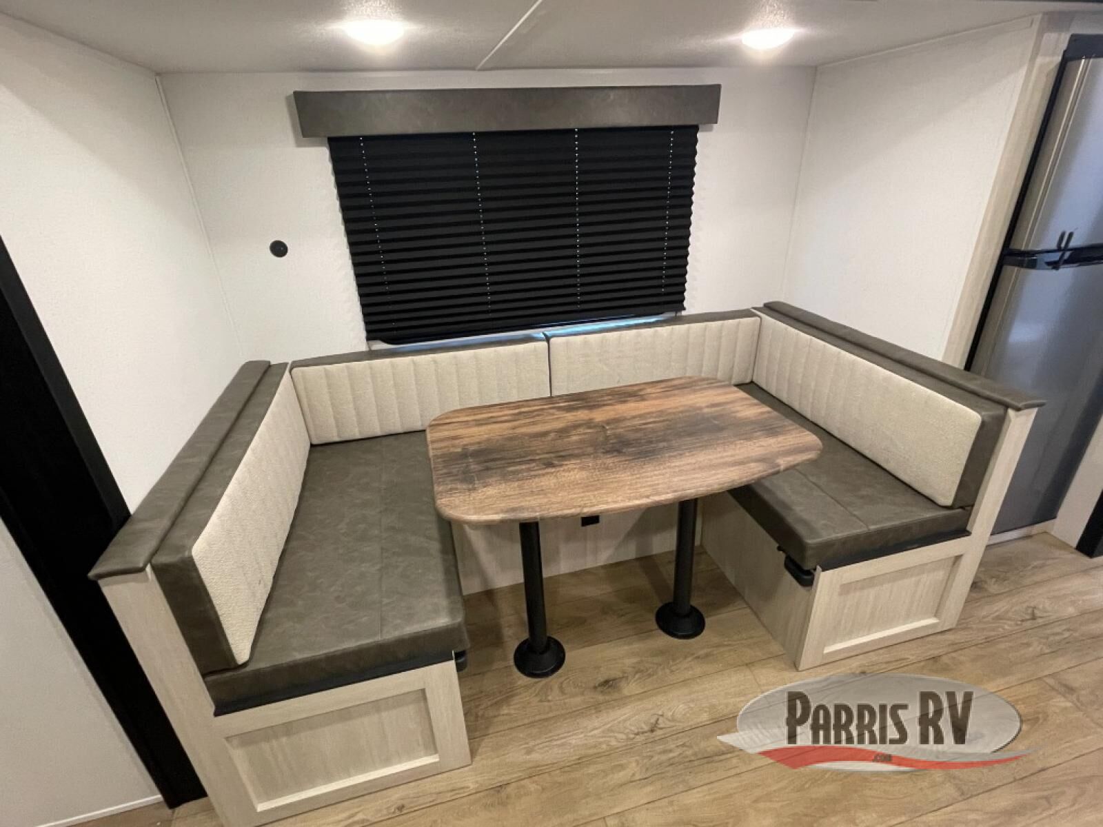 Your whole crew will love camping in this travel trailer since everyone can enjoy their own private space. The rear bunkhouses feature a private lower bunk room plus a private upper bunk room, each with their own door and a linen closet for storage space. The front master bedroom includes an RV queen bed, dual shirt closets, and easy access into the walk-thru bath. Head to the combined kitchen and living area to make dinner in the full kitchen, dine around the U-shaped dinette slide, and enjoy the fireplace! Outside, an optional micro kitchen with a grill can be added if you choose, and you'll find outside storage compartments to keep all your gear secure!