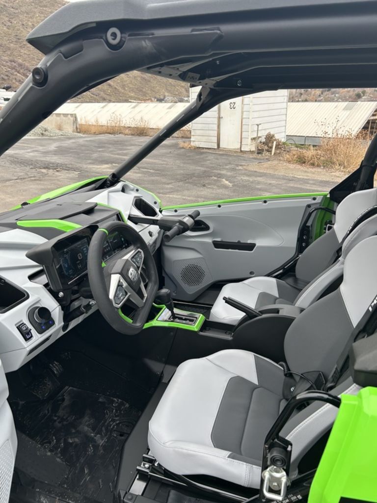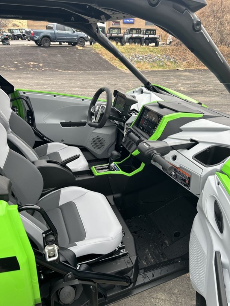 As the new Teryx® side x side flagship, it was important that the Teryx4/5 H2 side x sides look the part. The sleek, low-profile design, wide stance, and aggressive front-end are complemented by luxuriously painted Lime Green bodywork—a head-turning combination that conveys both its high level of performance as well as its high-grade build.