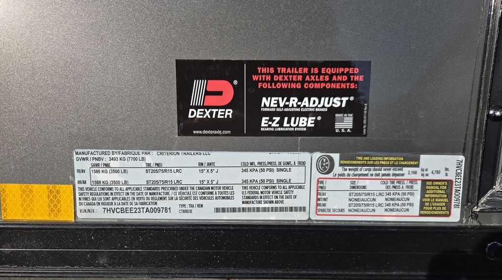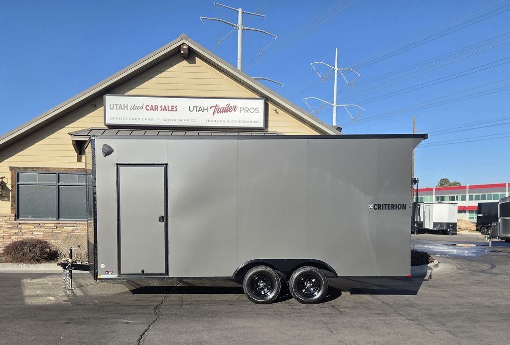 LIMITED TIME $162 A MONTH WITH ZERO DOWN WITH OUR SPECIAL LOCAL CREDIT UNION PARTNER!!! NO PRE PAYMENT-PENALTIES!!! EASY IN-HOUSE APPROVAL!!!!!!! PREMIUM INTERIOR LED LIGHTING PKG, CHECK IT OUT!!! CRITERION UTV Pkg!!! 6 inches added height for an 87 Inch Rear Entry Height, and a 90-inch interior Height!!! Dual Recessed Patented X-Track!! THE BEST!!! Extra Tough Poly Bead Rubber Floor With NUDO/DRYMAX Rubber Backing! Industry Leading .080 PolyCore Aluminum Exterior!!! Rear Spoiler with LED Load Lights! Roof Vent. 6x 5000# Heavy Duty Recessed and back plated D-Rings!!! Drivers Side Side Access Door! Fuel Pass Through Door! Criterion Trailers are Super Premium Steel Framed Trailers with a 3 Year Factory Warranty!!! Come take a look at Criterion to see unparalleled quality!!! 7TA009781