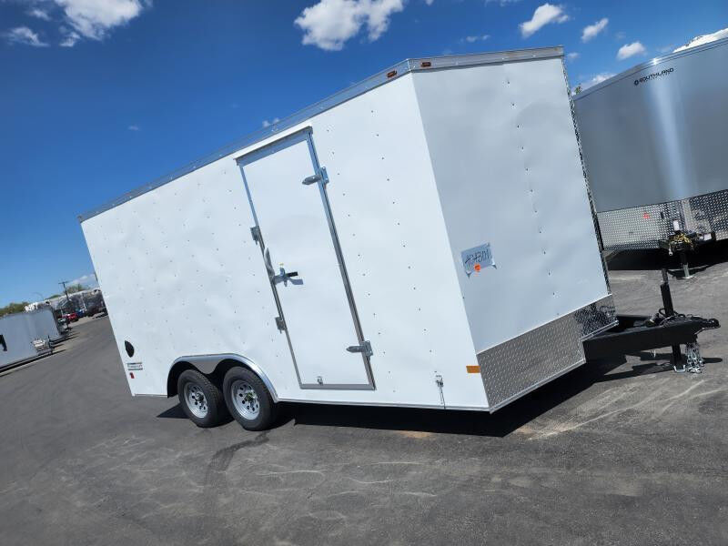 SPECS WIDTH: 8.5' LENGTH: 16' DOOR(S)/RAMP(S): Ramp WEIGHT: 2800 lb GVWR: 7000 lb PAYLOAD: 4200 lb AXLE(S): Tandem 3500 lb Axles COUPLER: 2 5/16"