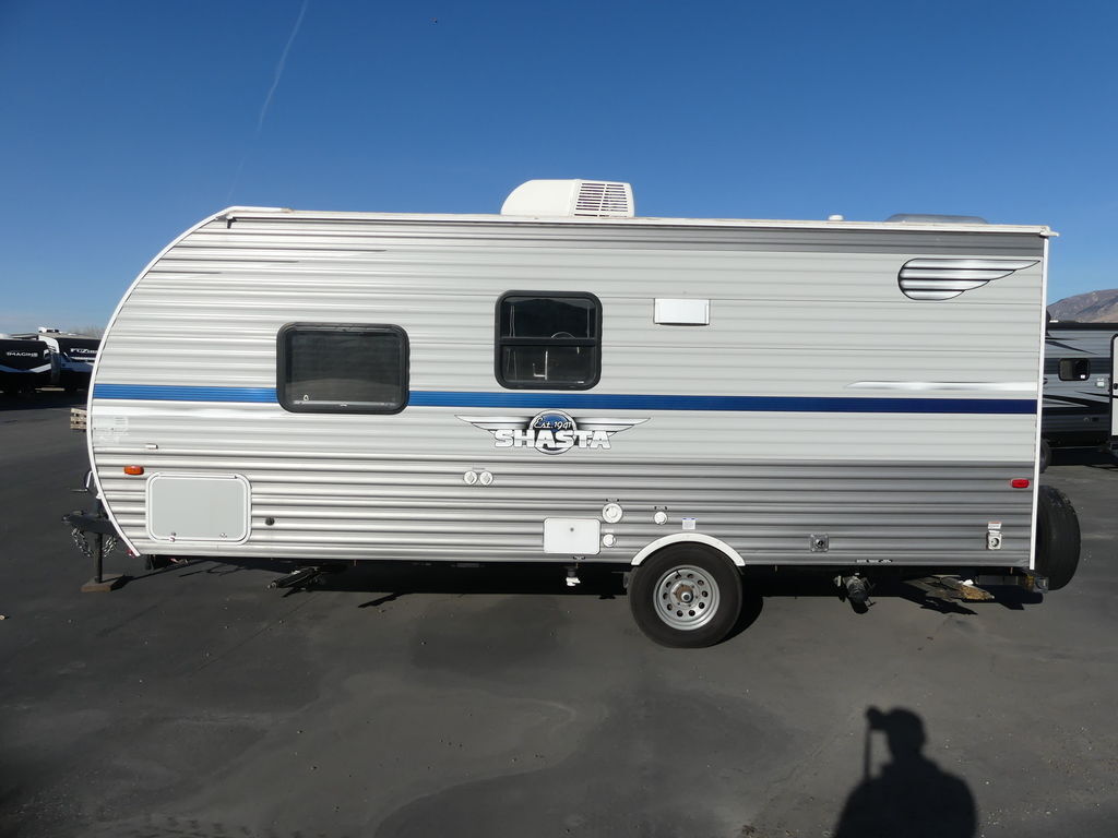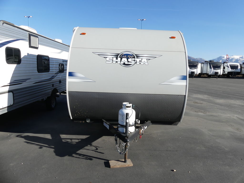 Shasta offers a wide variety of quality affordable lighter weight floorplans that are packed with convenience and value. Designed for couples and families to get away from it all and enjoy some well-deserved rest and relaxation. Shasta has been providing memories to campers for generations. Our well laid out interiors are bright and airy with modern woodgrain cabinetry, LED interior lights and residential styling countertops. You will absolutely love the large stainless steel residential refrigerator. You may want to add the optional free standing dinette with 4 chairs or LED fireplace to spark up your interior.
