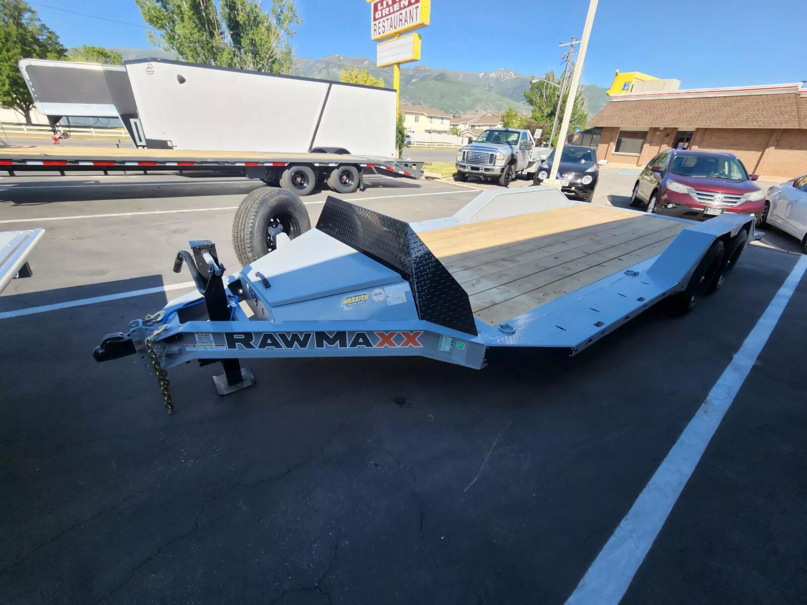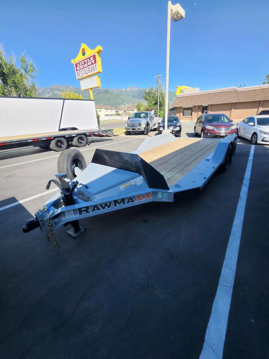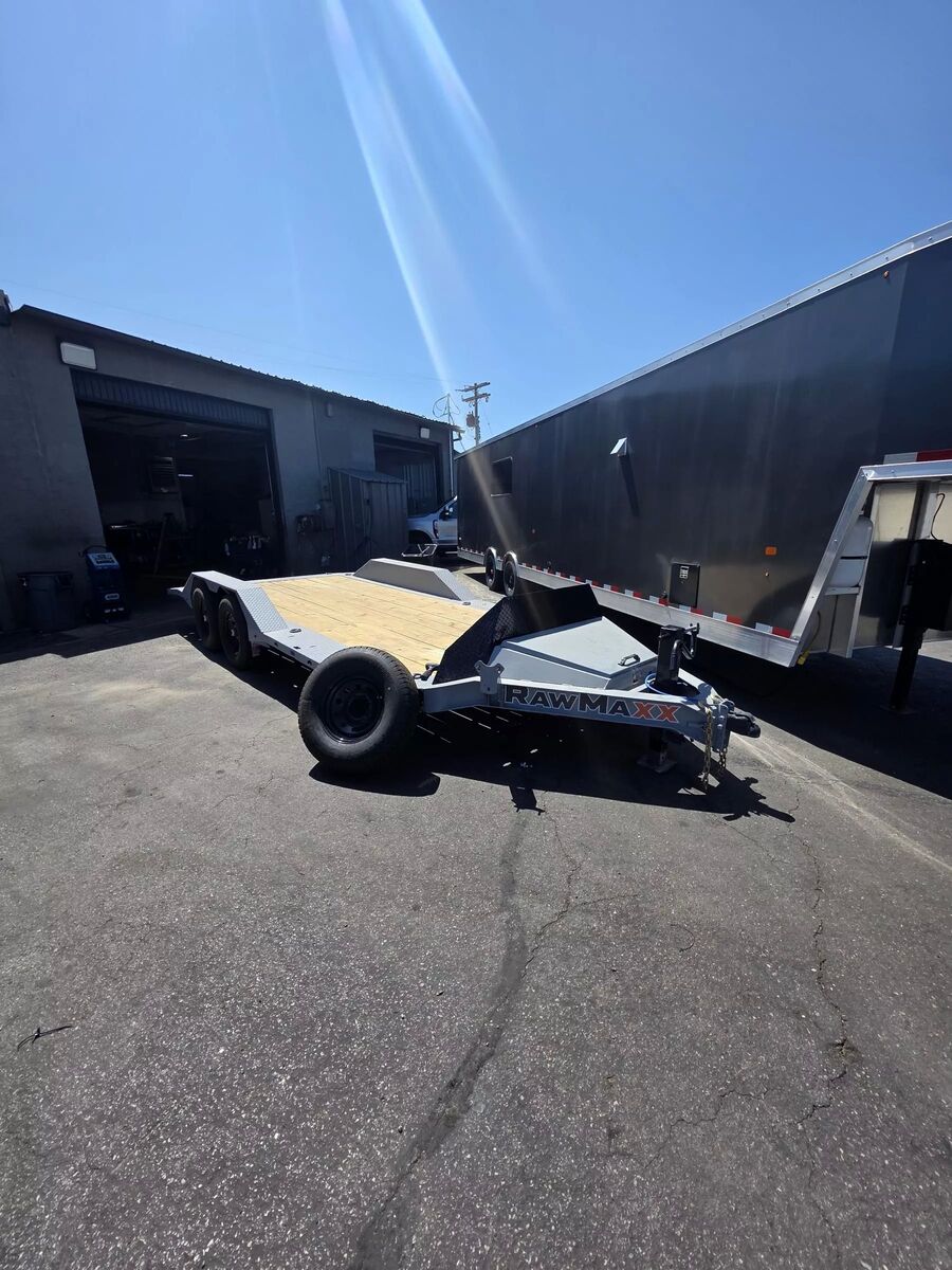 Stock #: RM5970 MANUFACTURE: RawMaxx MODEL: SLX 18' / Equipment / Flatdeck / Flatbed Trailer LENGTH: 18' WIDTH: 102" RAMPS: Slide-Out Ramps WEIGHT: 3500 lb GVWR: 14000 lb PAYLOAD: 10500 lb AXLES: Tandem Dexter Axles TIRES: ST235/80R16 10PLY\