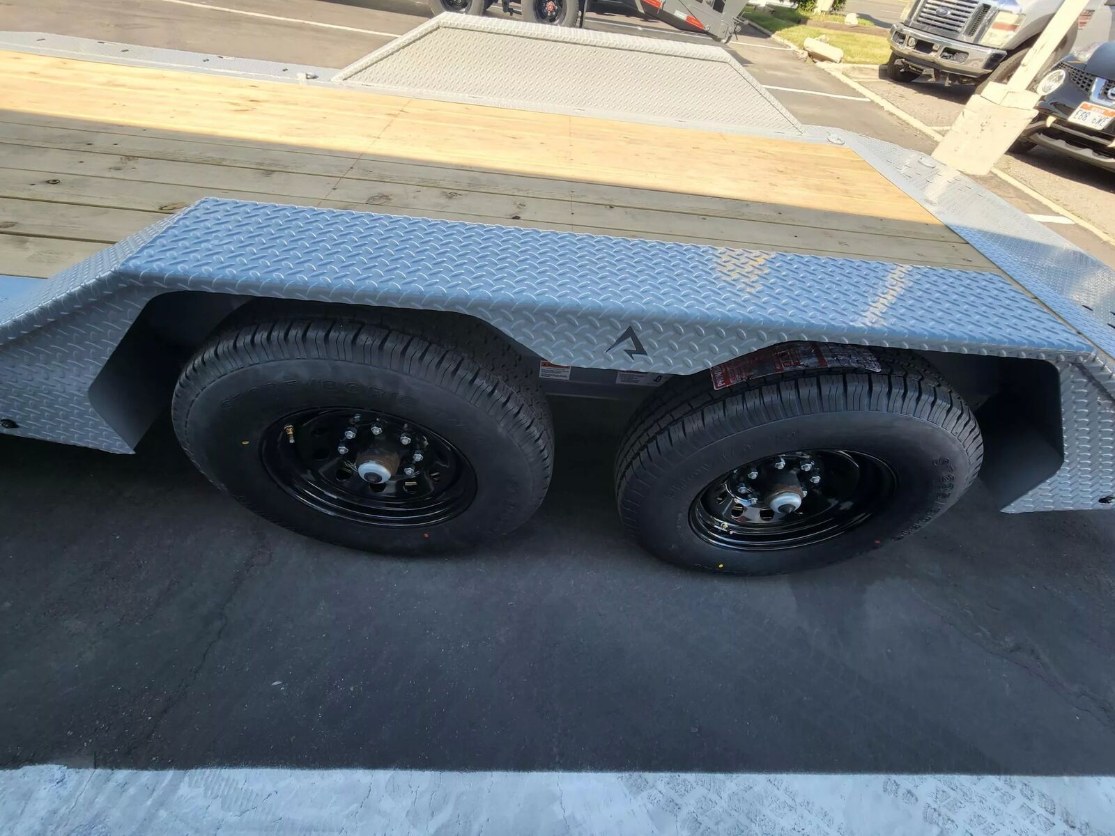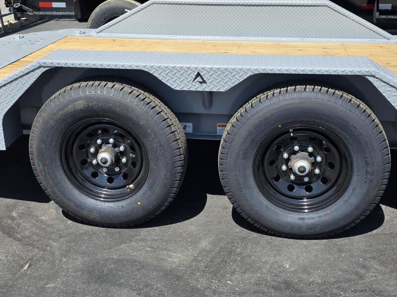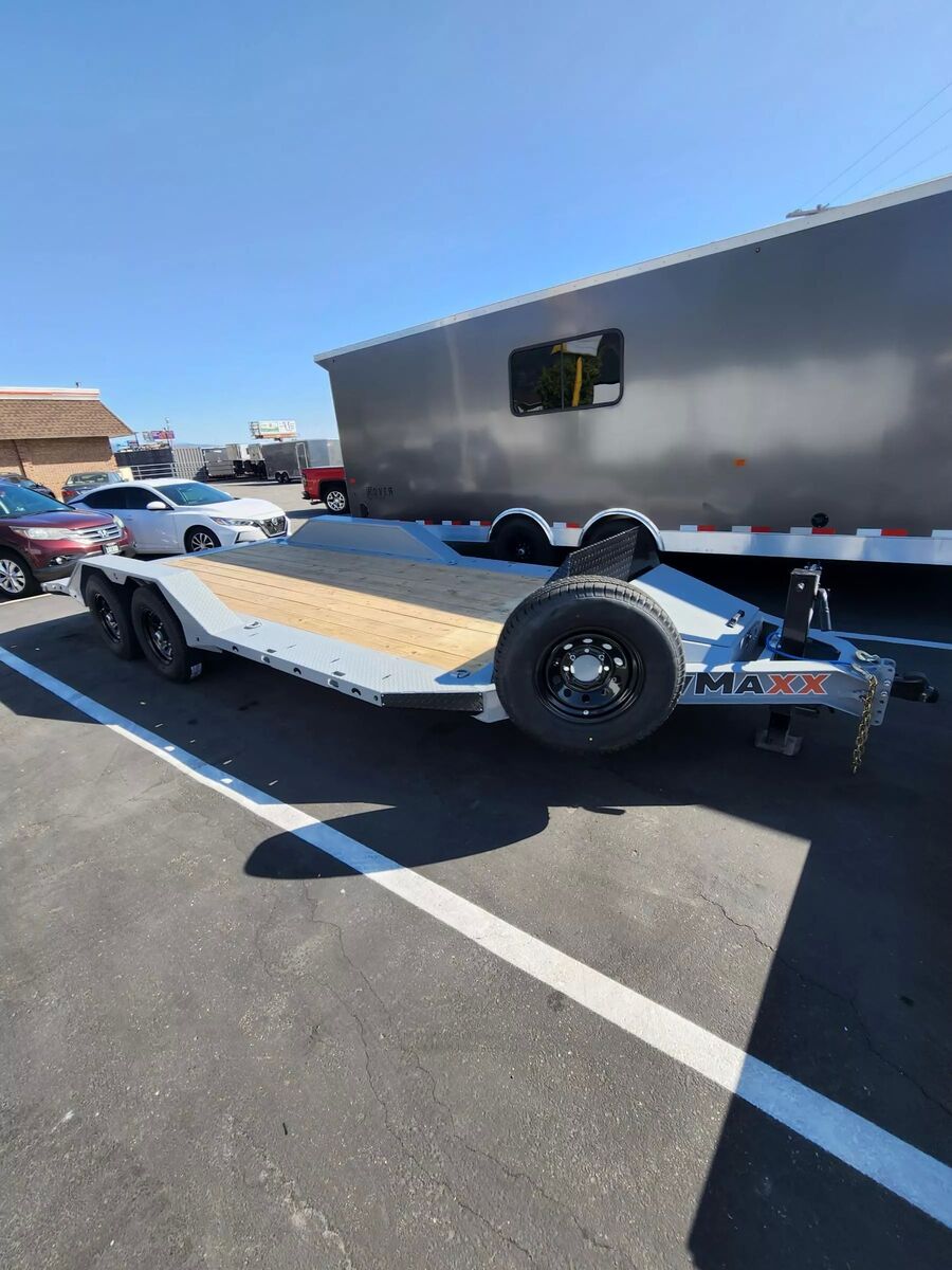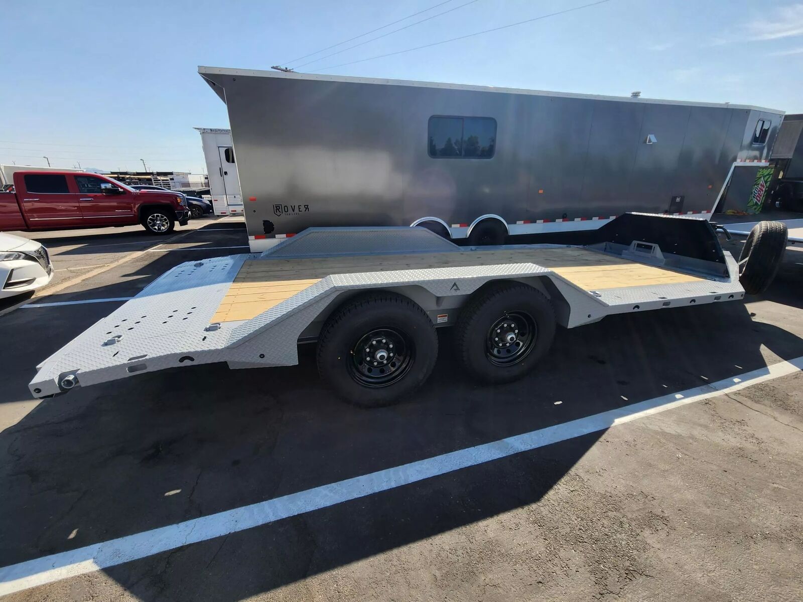 Stock #: RM5970 MANUFACTURE: RawMaxx MODEL: SLX 18' / Equipment / Flatdeck / Flatbed Trailer LENGTH: 18' WIDTH: 102" RAMPS: Slide-Out Ramps WEIGHT: 3500 lb GVWR: 14000 lb PAYLOAD: 10500 lb AXLES: Tandem Dexter Axles TIRES: ST235/80R16 10PLY\