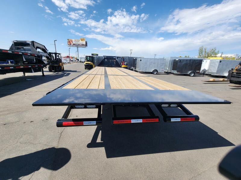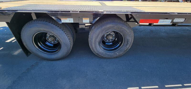 SPECS WIDTH: 8.5' LENGTH: 28' DOOR(S)/RAMP(S): Tilt Deck WEIGHT: 6400 lb GVWR: 20000 lb PAYLOAD: 13600 lb AXLE(S): Tandem 10000 lb Electric Leaf Spring Axles TIRES: ST235/80R16, 10 Ply Black Duals\