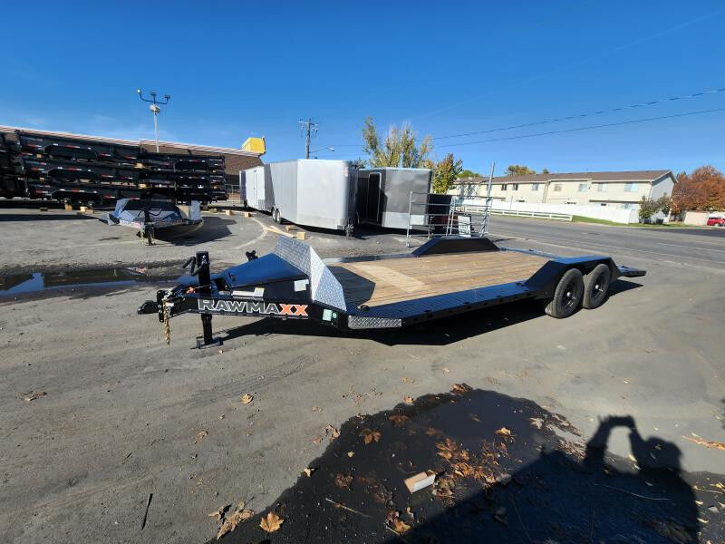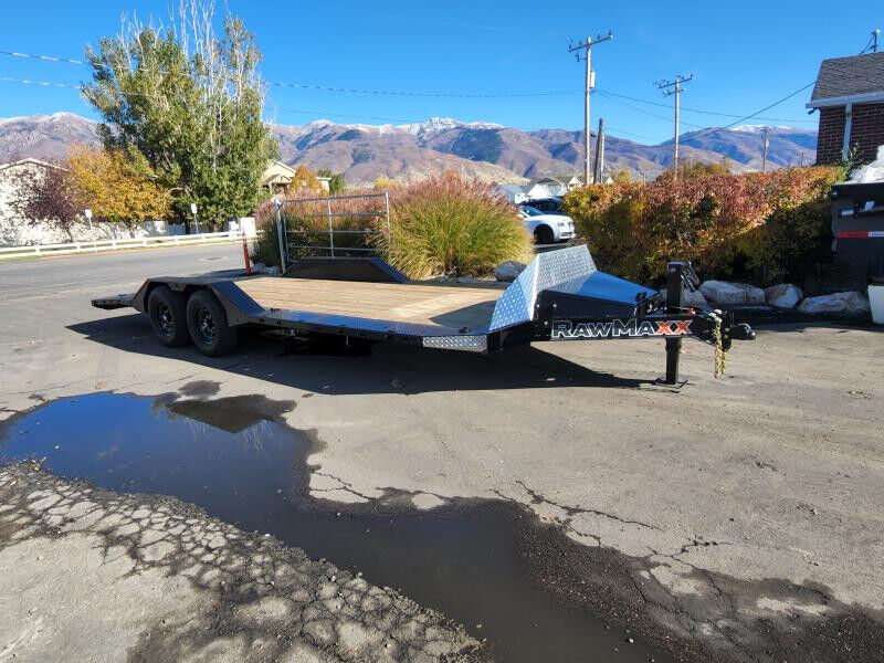 Stock #: RM6392 MANUFACTURE: RawMaxx MODEL: SLX 22' / Equipment / Flatdeck / Flatbed Trailer LENGTH: 22' WIDTH: 102" RAMPS: Slide-Out Ramps WEIGHT: 3800 lb GVWR: 14000 lb PAYLOAD: 10200 lb AXLES: Tandem Dexter Axles TIRES: ST235/80R16 10PLY