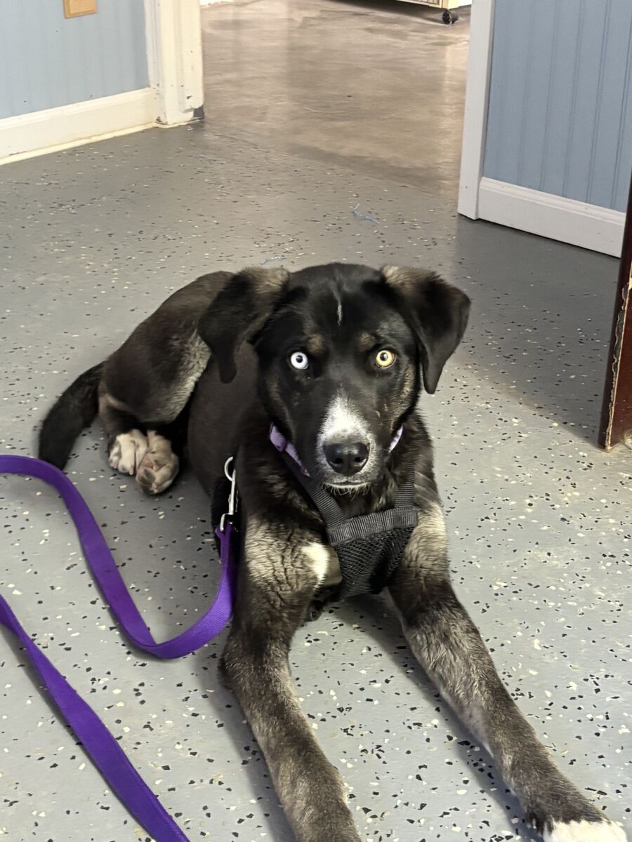 Skye is searching for her forever home, and we know her perfect person is out there. We believe she’s a husky/Aussie mix, under a year old (around 8–9 months), with a heart that’s just as big as her bright, curious eyes.