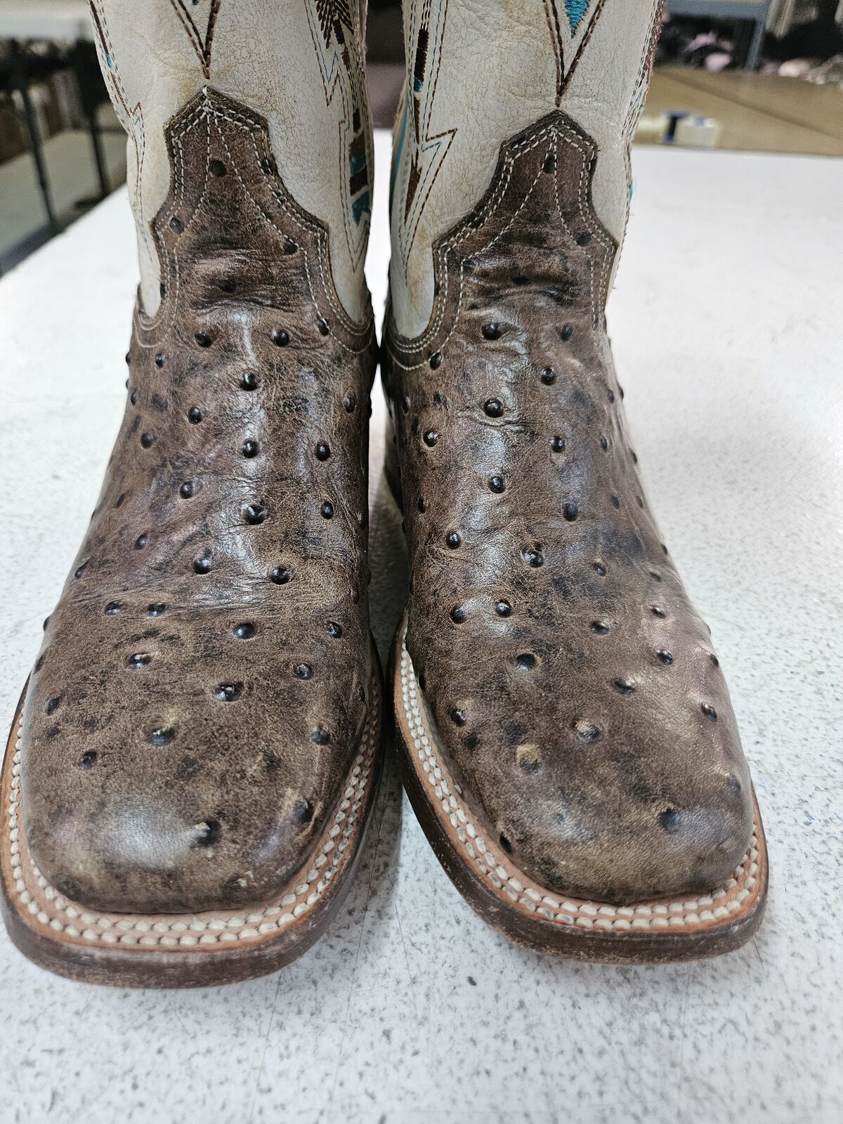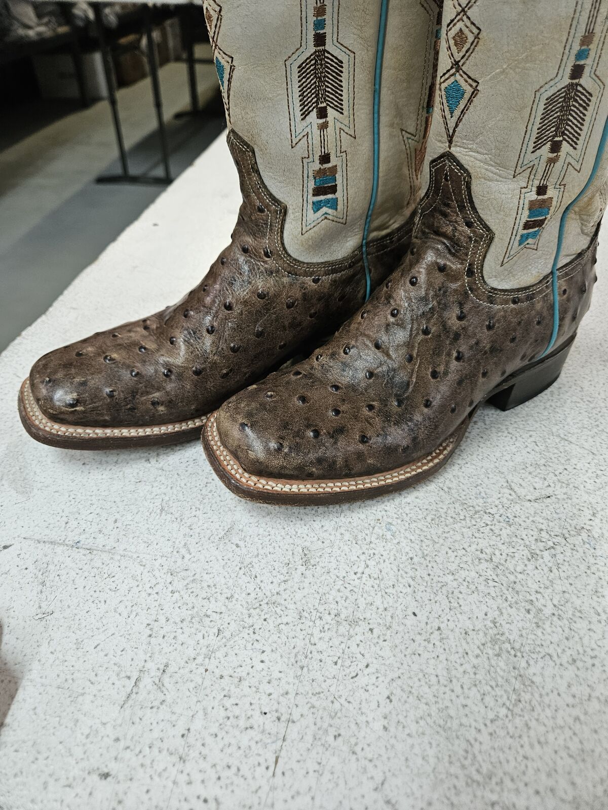 VenmoRoper cowgirl boots. Size 6 ladies. Ostrich leather print. Daughter wore them a few times and grew out of them. Original price $179.99. My loss your gain. $99 or best offer 801-372-0202