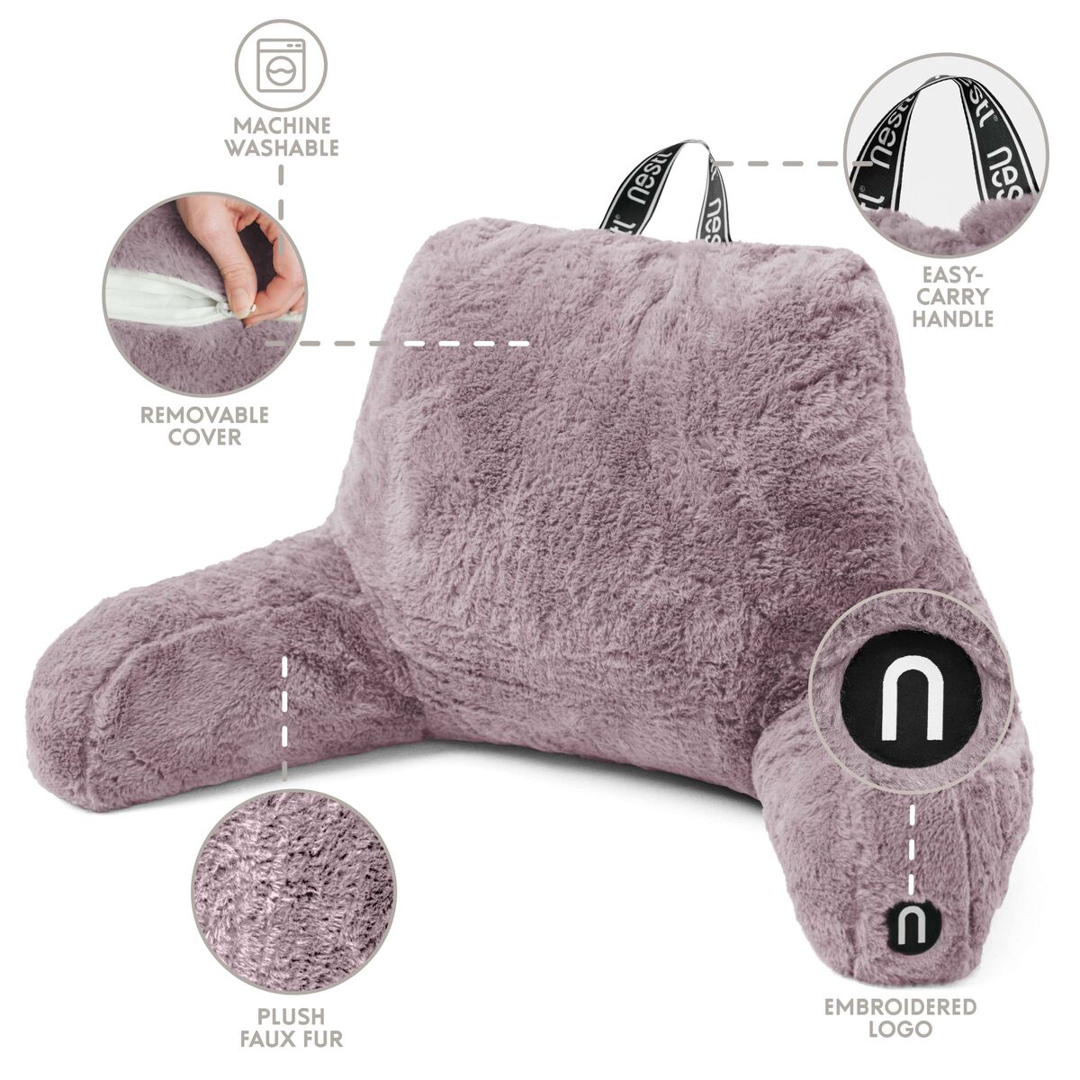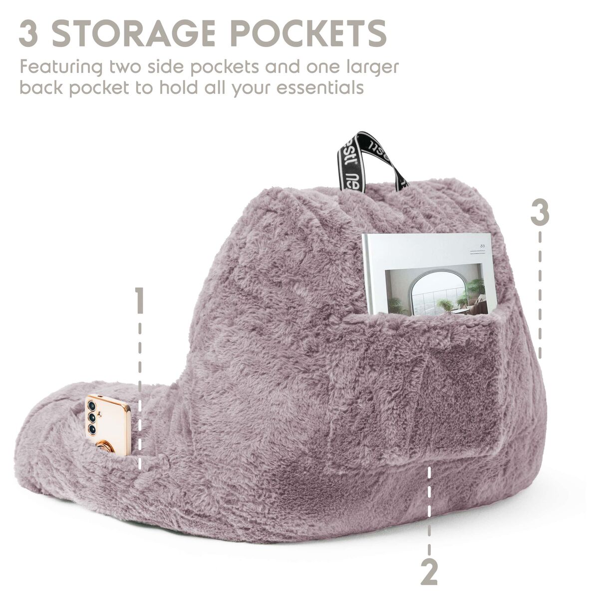 CashAppNESTL Teal Fur Reading Pillow with 3 Storage Pockets