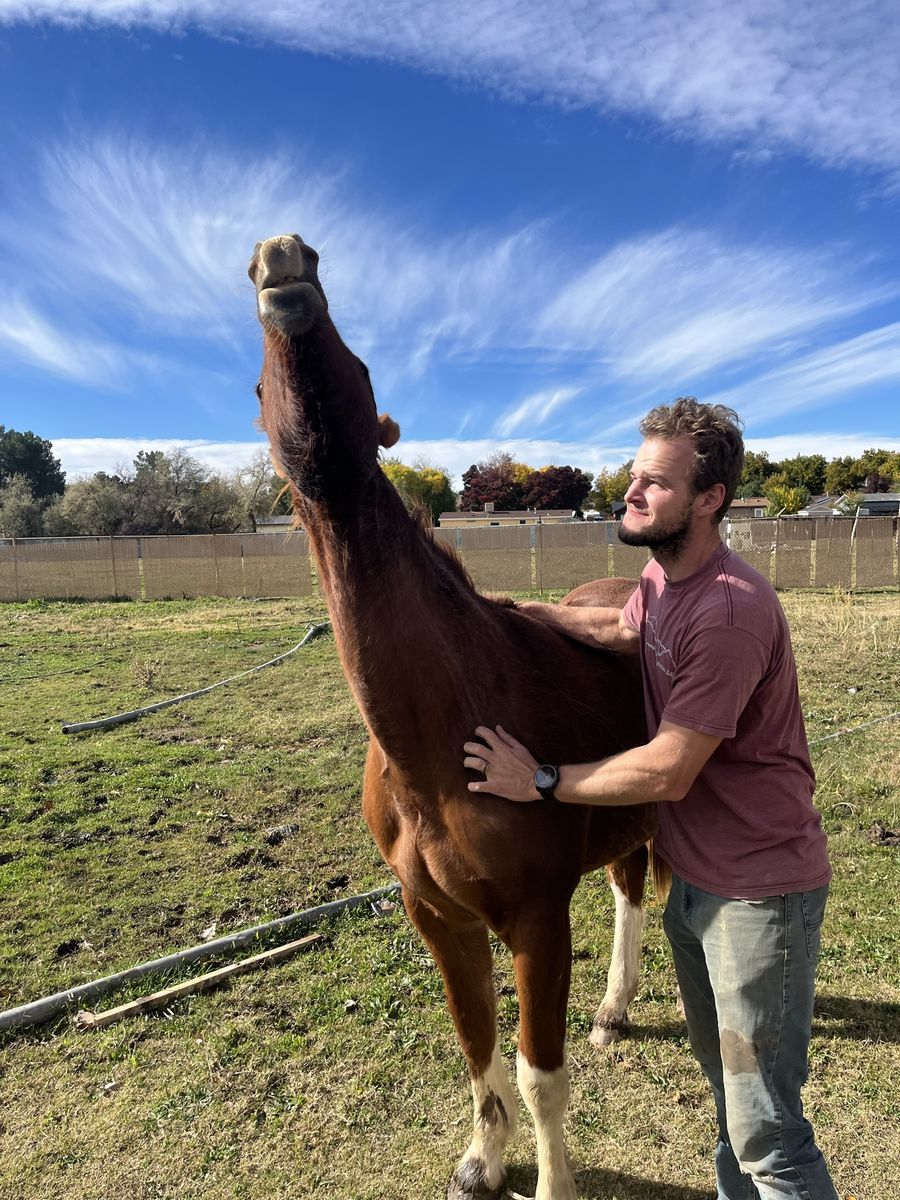 We emphasize his temperament because we expect his foals to be the same: big, gentle, and easy to train.