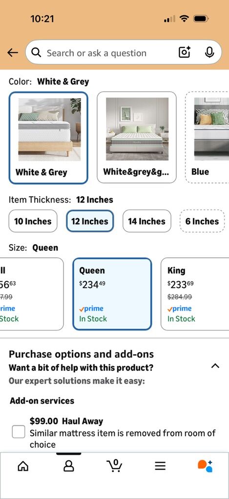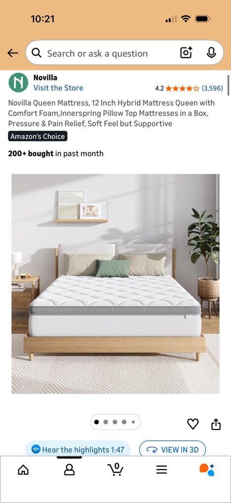 I purchased a year ago and it was a nice mattress but a little soft for my taste. Still in very good condition, I used a mattress topper so no stains or wear. Right now it’s just taking up space in my apartment so I am willing to negotiate price.