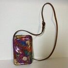 Venmo5"x8" leather with half zip closure and brasstone hardware. Foldover magnetic snap and ziparound closure. Beautiful leather in floral pattern with soft sued interior.