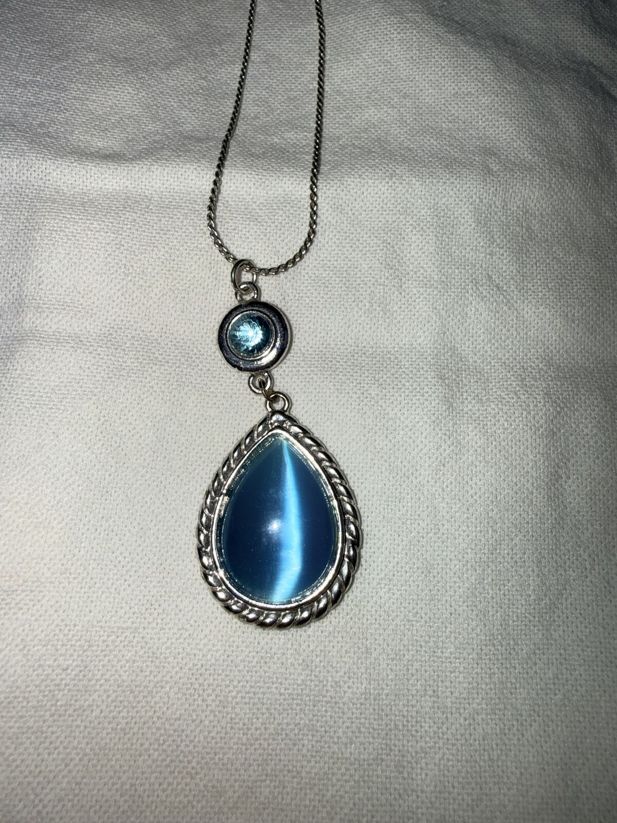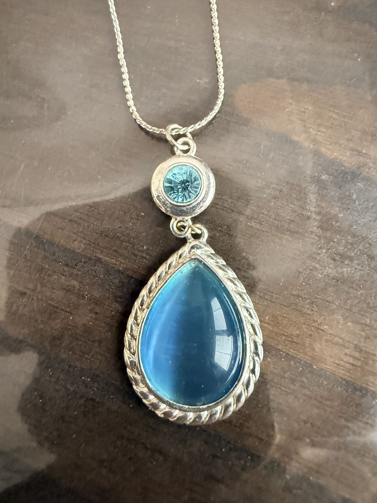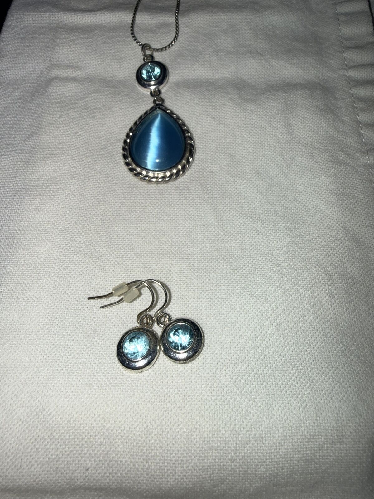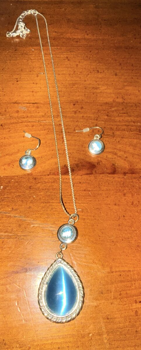 VenmoThis is a sterling silver necklace and pierced earring set featuring aquamarine blue stone.