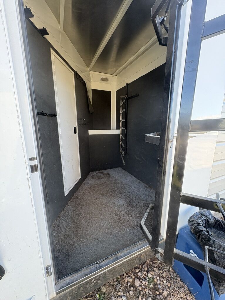 Description:2019 Trails West Santa Fe 15 SW 16' Stock BackThis trailer is 8' Wide and 7'6 Tall, has open stock sides all the way around, features an escape door, hay rack and ladder, electric awning, has 14 ply tires with aluminum wheels, an enclosed front end with dual jacks, dual batteries and two propane tanks and an Onan generator.Fully carpeted mid tack features a swing out 4 tier saddle rack, tack organizer and brush tray on the door, water caddy, bridle hooks, and a shelf. Also has walk through doors to the LQ and to the stock area.The stock area is lined and insulated & features LED lights inside, LED flood light, horse/stock area is fully rubber lined, has pop up roof vents, and 1 slam divider.Great Living Quarter package 11' SW with a dinette in the slide out! Trailer has 18k BTU furnace, Duct AC, Fresh/Gray/Black Water tanks, water heater, AM/FM/CD/DVD bluetooth stereo, recessed lighting, rolling screen door and soft touch ceiling. The bunk area features tons of storage! California KING size mattress, night stands and access to the TV.The kitchen has an 8.0 Cubic foot fridge, microwave/convection combo, hood vent, porcelain sink with faucet and sprayer, towel hook, paper towel hook and more storageThe bathroom is a nice size with a porcelain sink vanity, mirrored medicine cabinet, full length mirror on the door and two more additional mirrors on the wardrobe closet and walk thru door, wardrobe closets with LED light sensors, huge shower, toilet, more towel hooks and a walk thru door! There is so much to this trailer