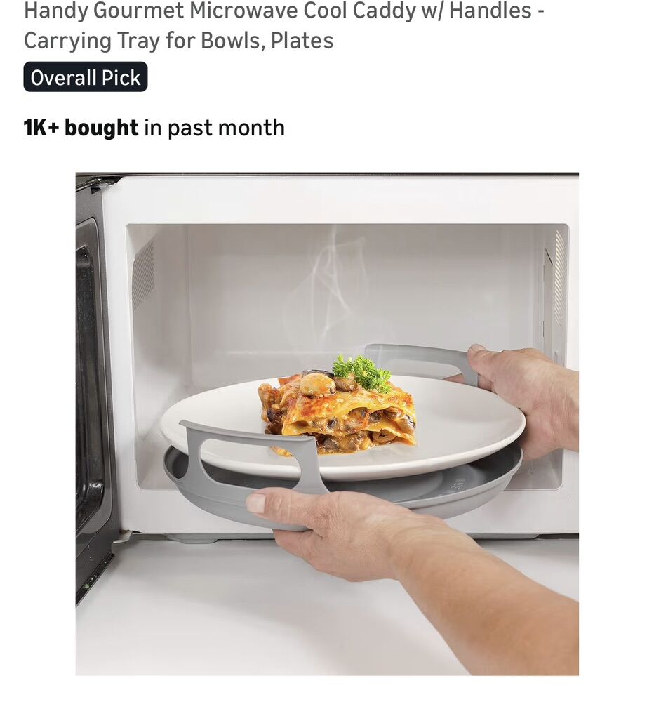 ApplePayNew Two pack COOL CADDY Microwave carrying tray for bowls and plates and other hot dishes. Easily remove hot items from microwave with COOL CADDY’s handles providing easy lifting and transport. See photos. Normally retails for $9.75 apiece online. I am Overstocked! Asking $6 for two or $10 for four.