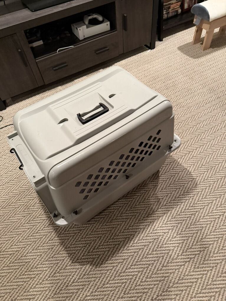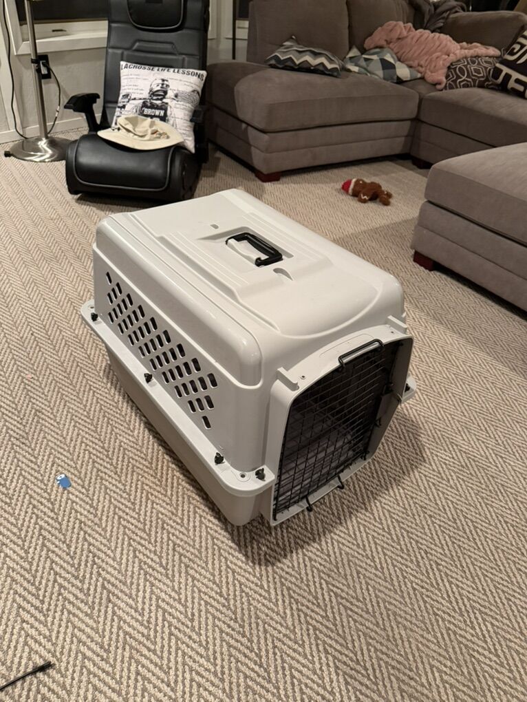 Venmo24 L x 16 W x 20 H Bought it new at Petco, my puppy was in it one time when I brought him home. Never was in it again. One time. Essentially brand new. I think I paid $140 for the kennel and pad for the inside. Comes with the pad.