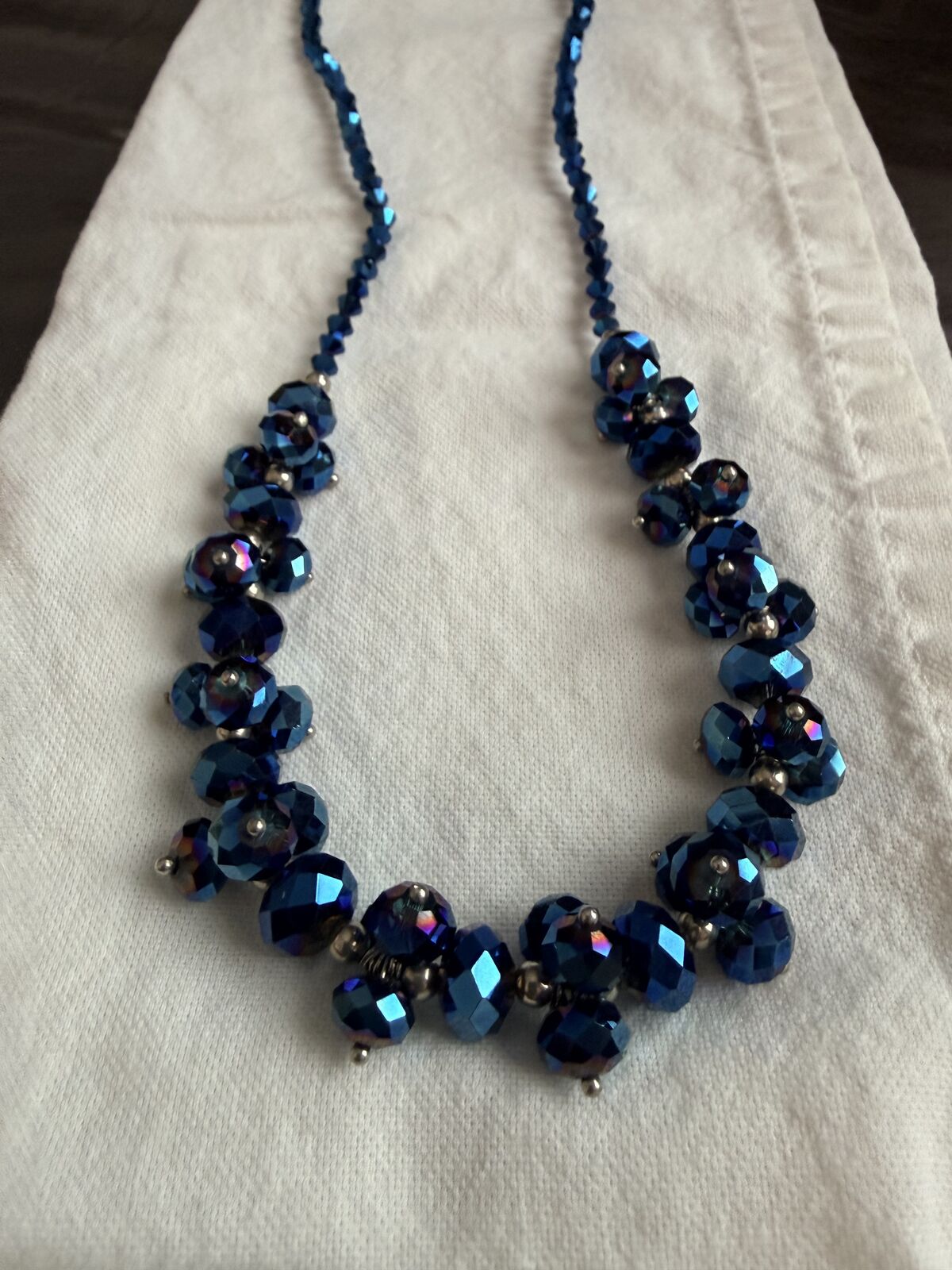 VenmoBeautiful necklace featuring gorgeous multi-faceted royal blue Aurora Borealis crystals that sparkle brilliantly as they catch light from every angle. A stylish accessory that will add the perfect finishing touch to any outfit.