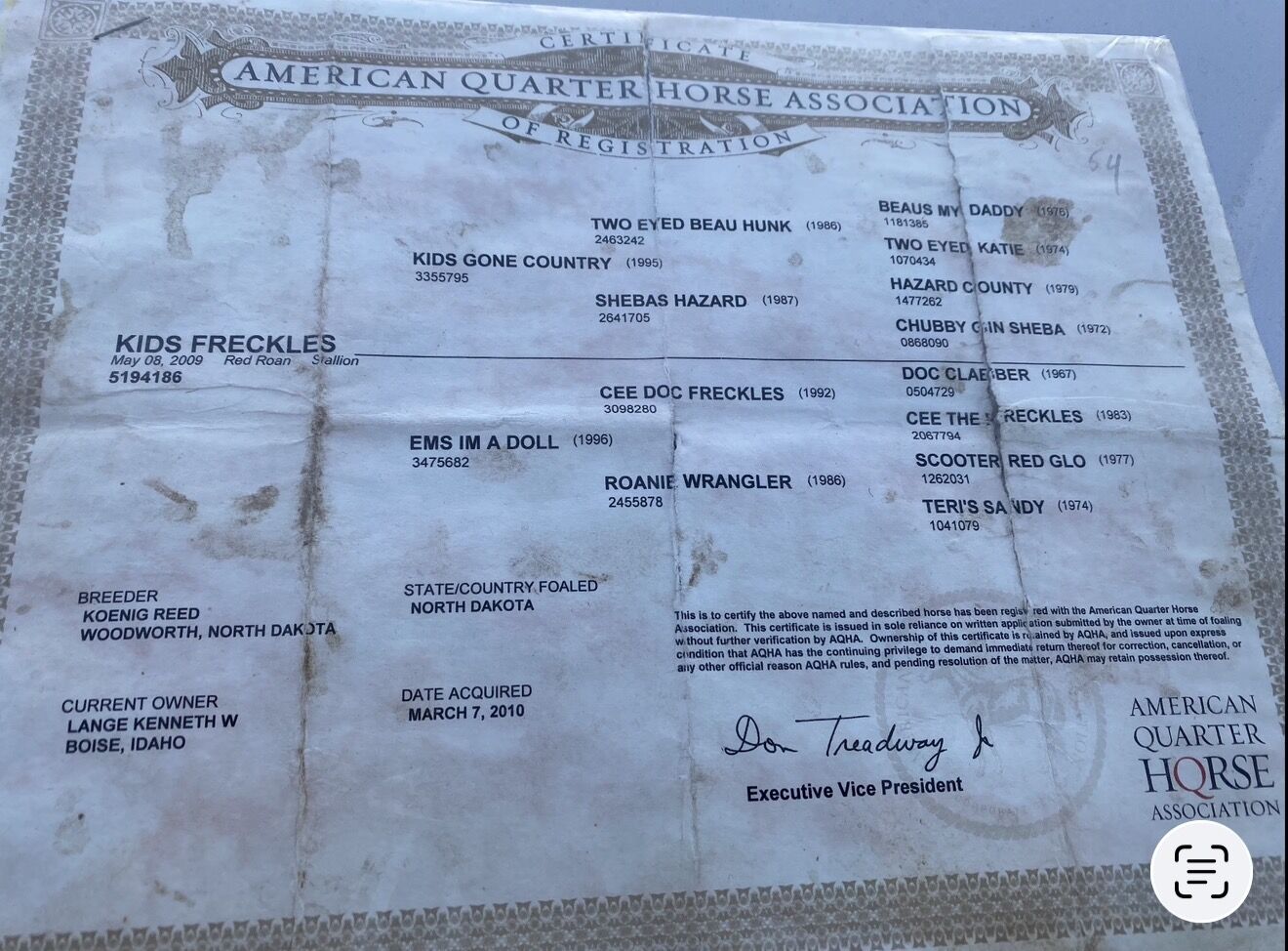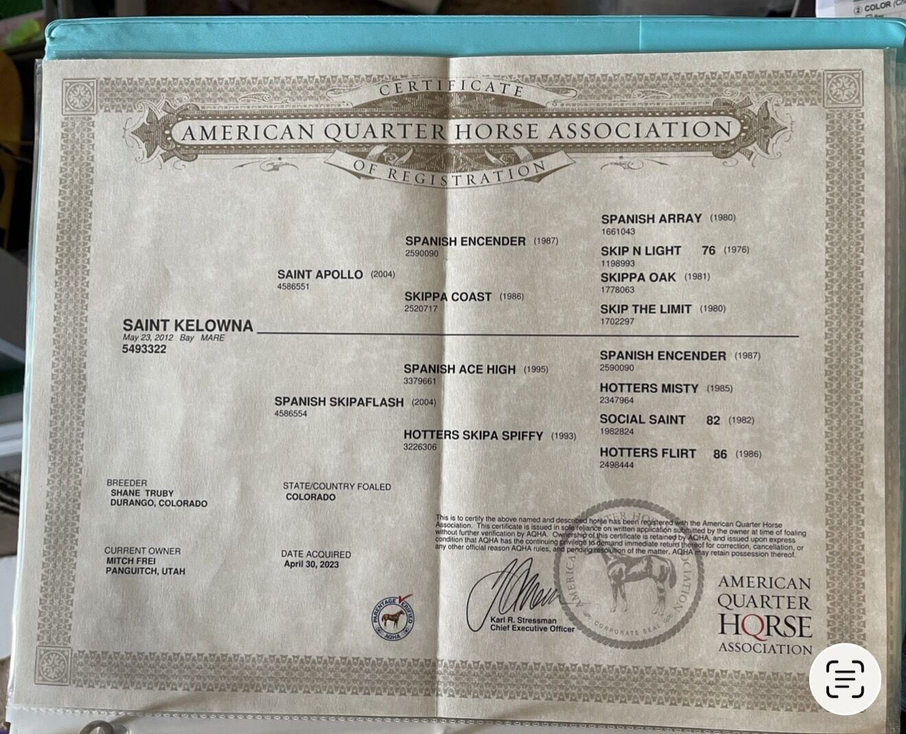 Venmo2012 AQHA skipper W broodmare named Sweetie because she is that sweet. She was exposed and believed to be bred to a red roan stud who's papers are included. She had a bay roan stud colt with him last time who was beautiful. She has never been rode, only halter broke. Gentle. Trims great. Has been to vet for AI several times and is easy. Has been on pasture most of her life. Any questions let me know.