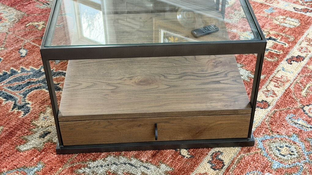 The design works well in modern, transitional, or slightly industrial spaces. Sturdy, functional, and thoughtfully designed with storage that keeps surfaces uncluttered.