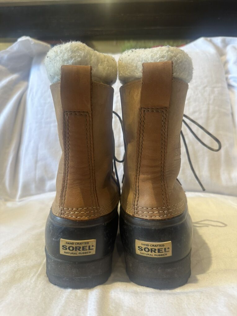 Sorel caribou women’s size 9 waterproof winter boots. These have the natural leather uppers with black rubber foot bed and pull out insulating liners. These are in good condition, see photos for details. I take cash or Venmo, but cash is preferred. Text is best. 801-201-4446. Check out my other ads for additional sizes and styles.