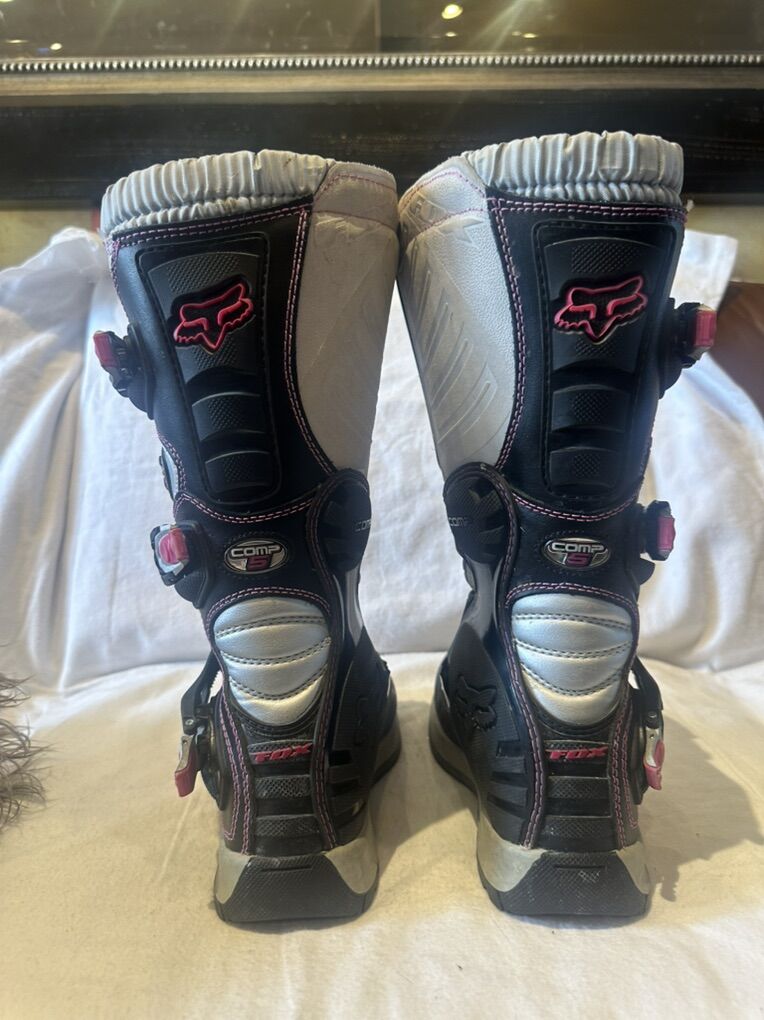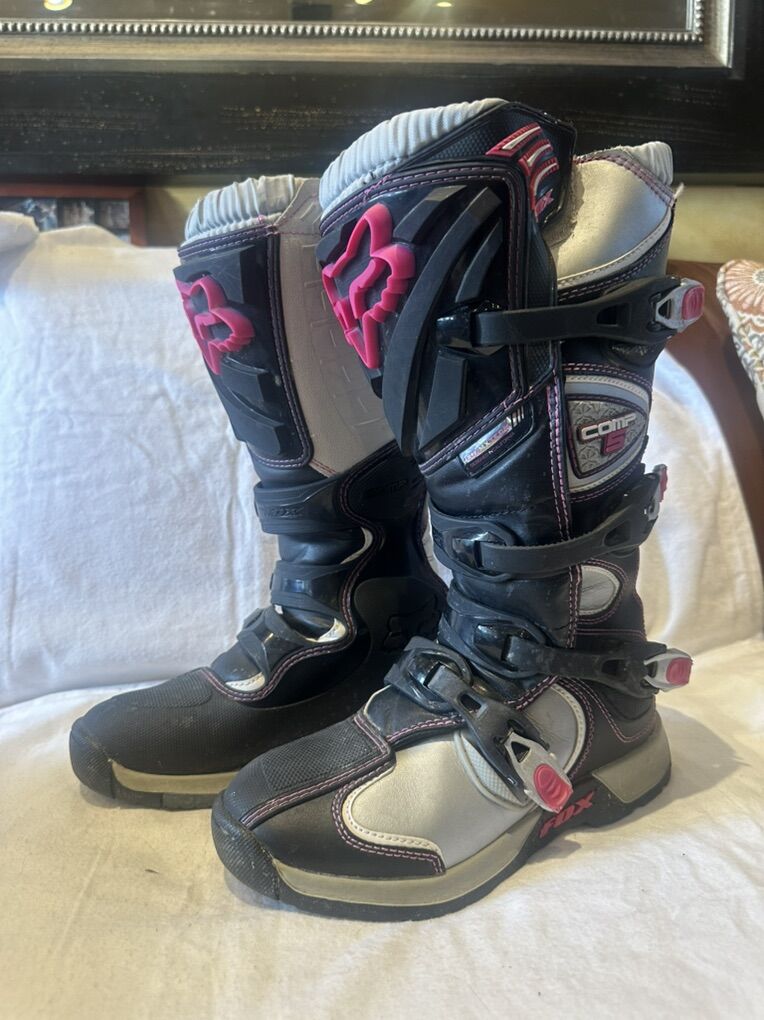 Fox comp 5 women’s size 8 black and gray with hot pink accents motorcycle boots. These are in amazing condition. See photos for details. Everything works and hardly any wear to the soles. See photos for details. I take cash or Venmo, but cash is preferred. Text is best. 801-201-4446.