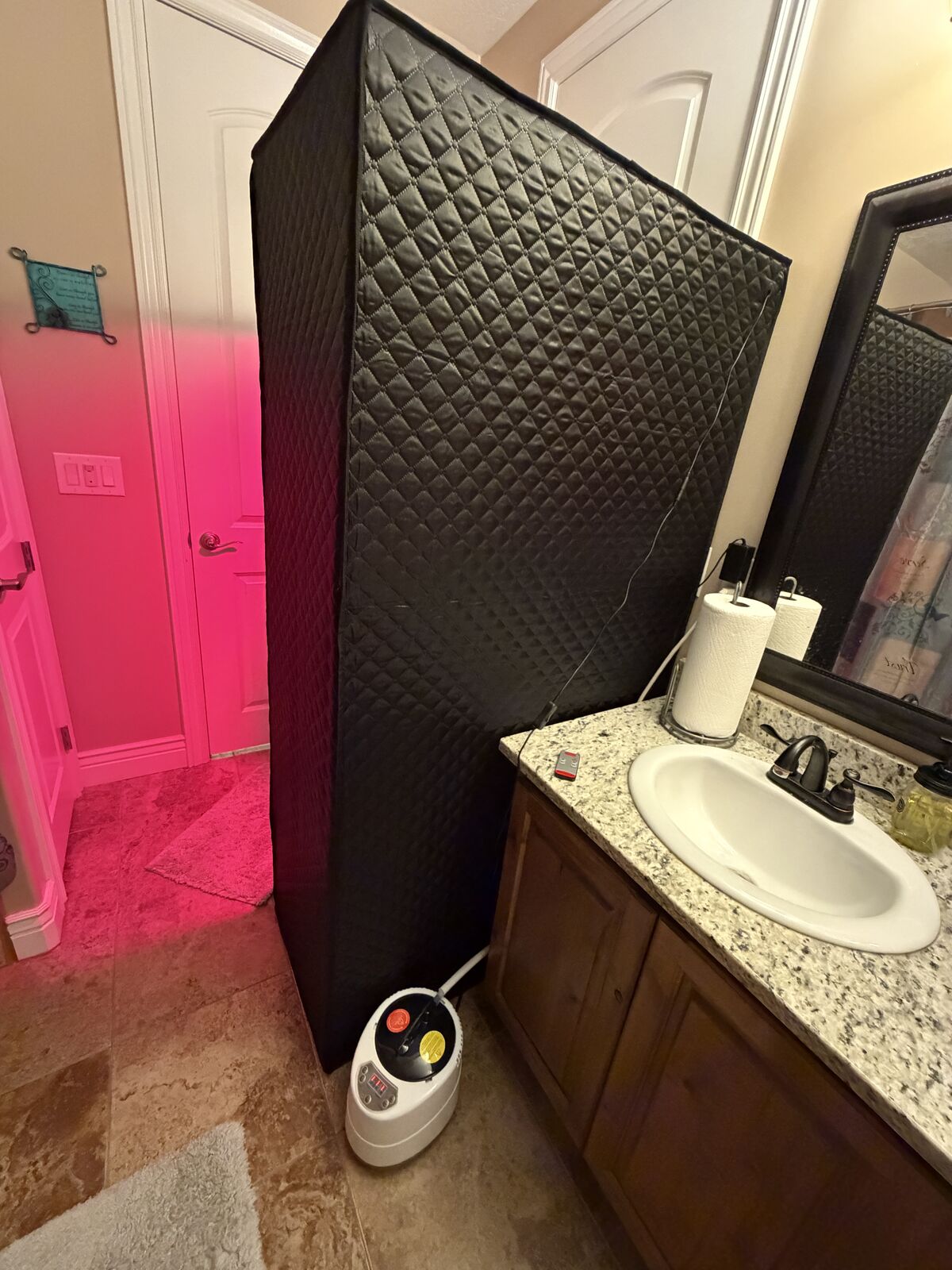 CashAppMIXC Portable Steam Sauna Box, Portable Sauna for Home, Person Sauna Tent Sauna Box at Home Spa with 2.6L & 1500W±10%, Remote Control, Folding Chair, Home Sauna for Gym, Pilates, Garage, Hot Tub. WITH added RED light Therapy light (apparently the newer kits don't come with it).