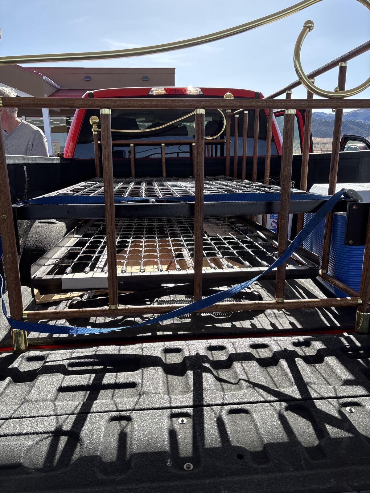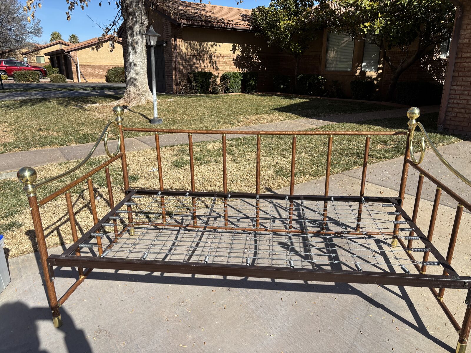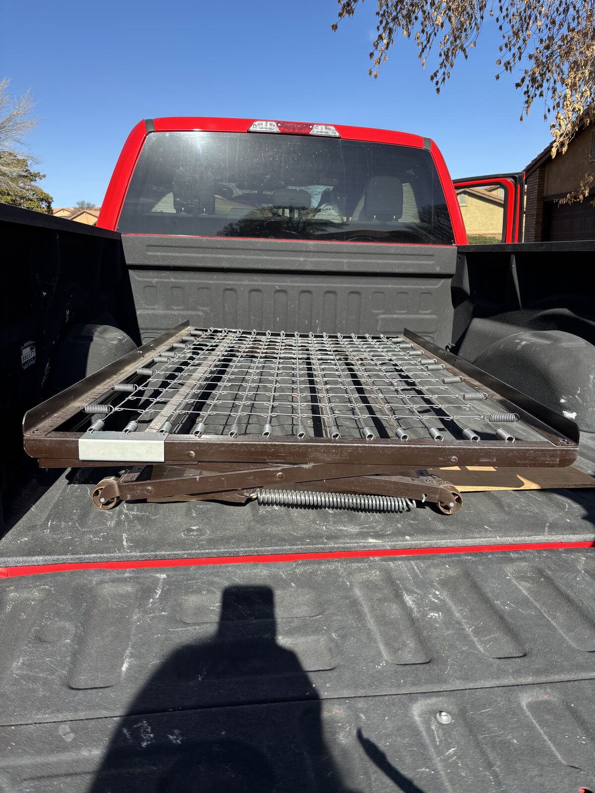 VenmoGreat day bed. The top is a twin mattress and underne is also a twin. When pulled out and raised, the 2 twins make the size of a king (-according to internt). Can be used as a twin or when needed pull out the springs under the daybed and make into a larger bed (king) with twi twin mattress. The twin in top makes a great couch and the extra twin stores nicely underneath in the bed frame. Great stowaway for the extra twin until needed. A couch and bed all in one.