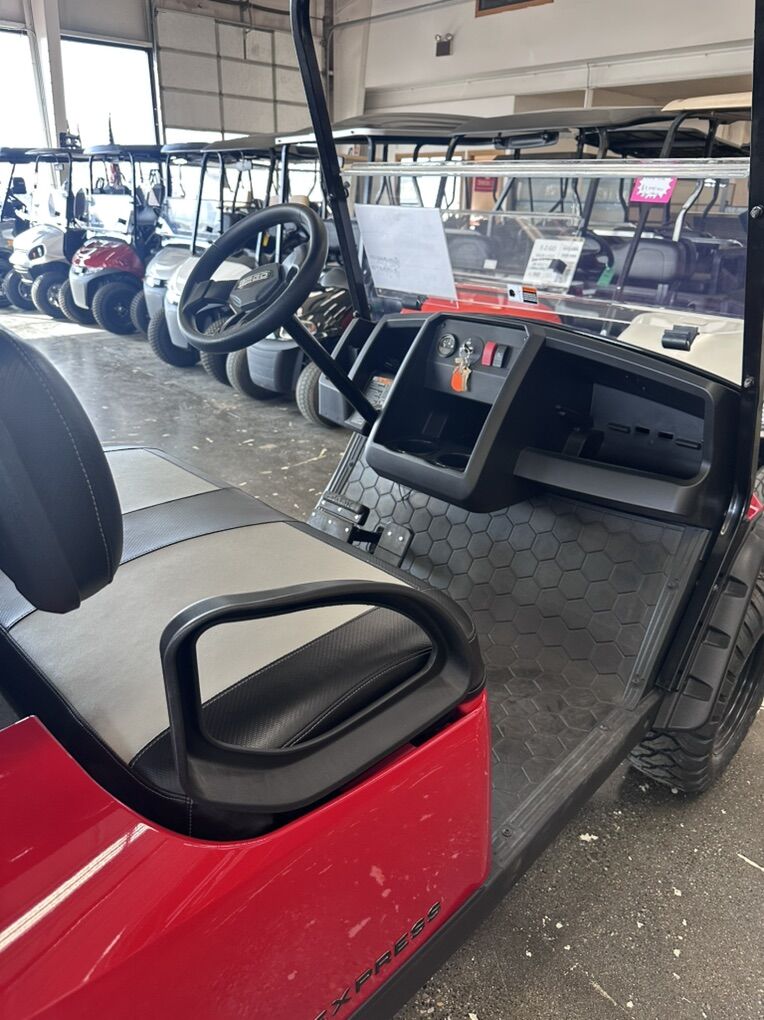 Brand new 2025 EZGO Express 4 Gas 2+2 Gas cart in Flame Red Color. Priced at close out pricing with EZGO rebates applied. Comes with 2 year warranty from EZGO. Price is $9,995. Call or text 801-633-2596 for more details. List price on this cart is $13,295.